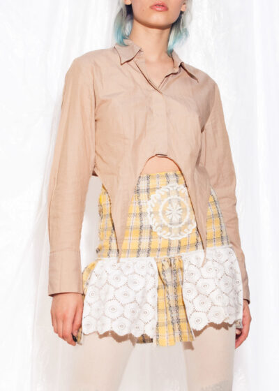 Vintage Blouse 80s Reworked Butterfly Wing Shirt in White
