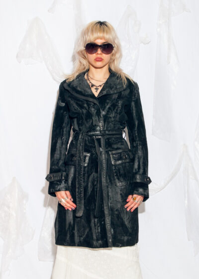 Reworked Vintage 90s Leather Coat in Black Hand Painted