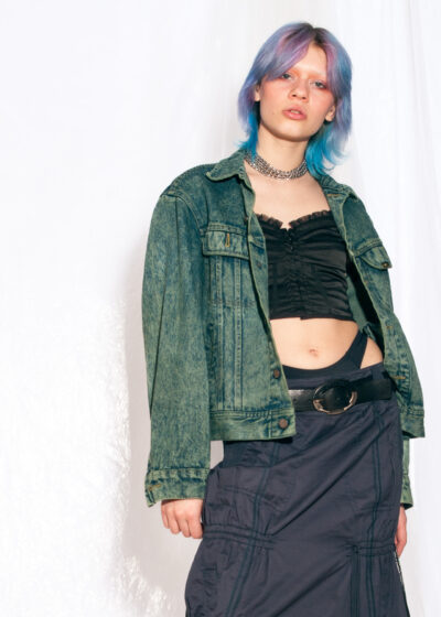 Vintage Lee Denim Jacket 80s Reworked Overdyed Coat in Green
