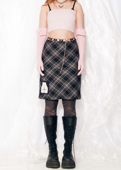 Vintage Skirt Y2K Reworked Graphic Patch Midi in Plaid Wool