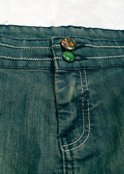 Reworked Vintage Y2K Flare Jeans in Overdyed Green