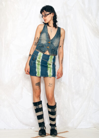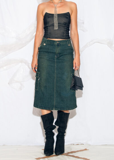 Vintage Y2K Reworked Cargo Denim Skirt in Green
