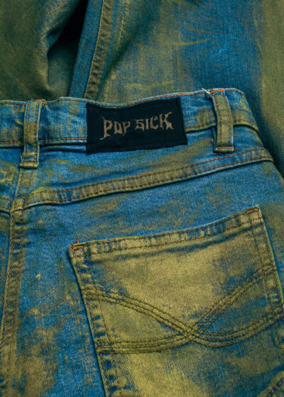 Reworked Vintage Y2K Painted Flare Jeans in Green