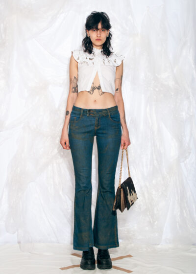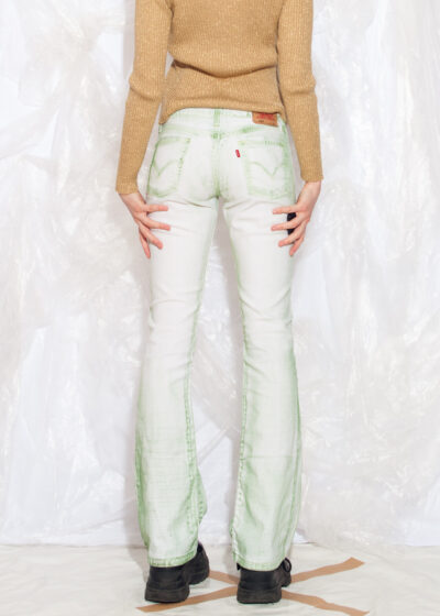 Vintage Y2K Levi’s Flare Jeans in Green White Hand-Painted
