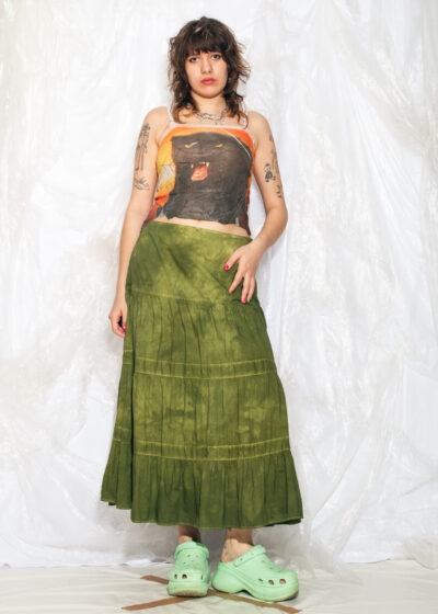 Vintage Y2K Tiered Goblin Skirt in Tie-dye Green Reworked