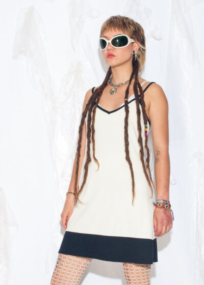 Vintage Y2K Mini Slip Dress in Black and Beige