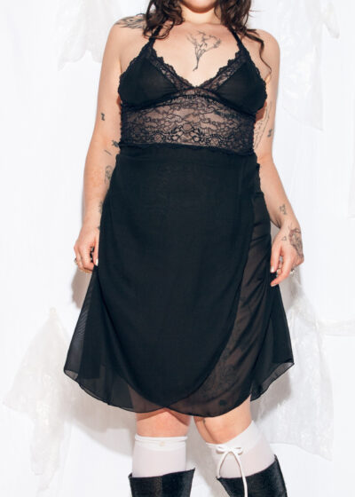 Vintage Y2K Whimsigoth Slip Dress in Black Lace