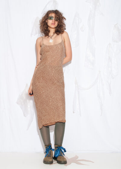 Vintage Y2K Leopard Mesh Mini Dress in Brown