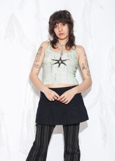 Reworked Vintage Y2K Brown Baby Tee with Painted Star