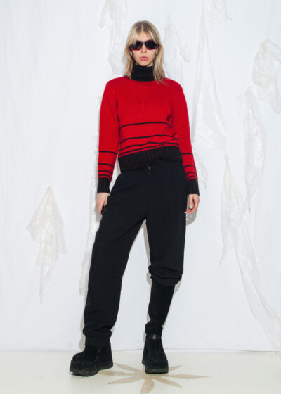 Vintage Y2K Striped Knit Jumper in Red Wool Cotton