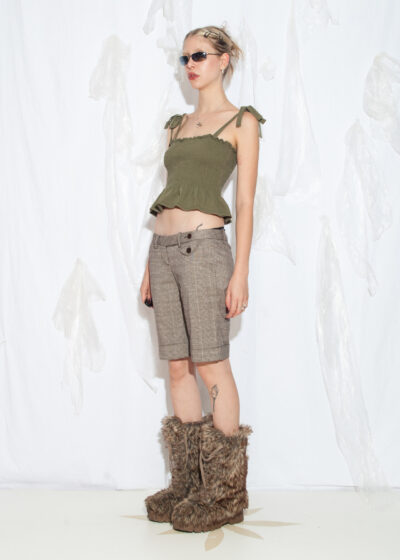 Vintage 90s Slim Capri Trousers in Green Plaid