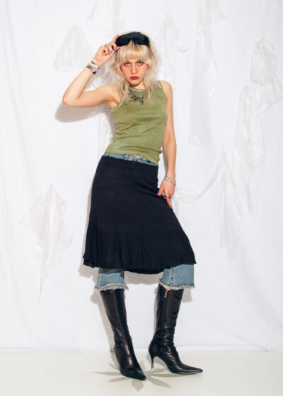 Reworked Vintage Y2K Midi Dress in Black and Green