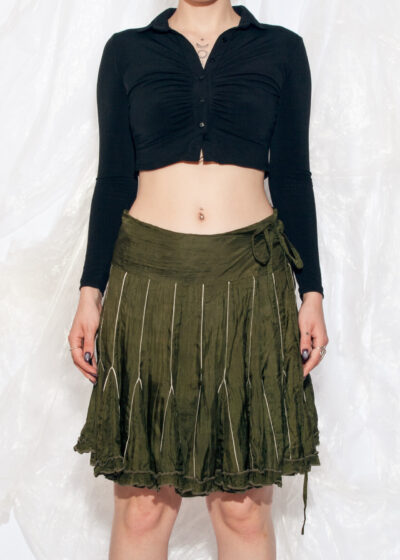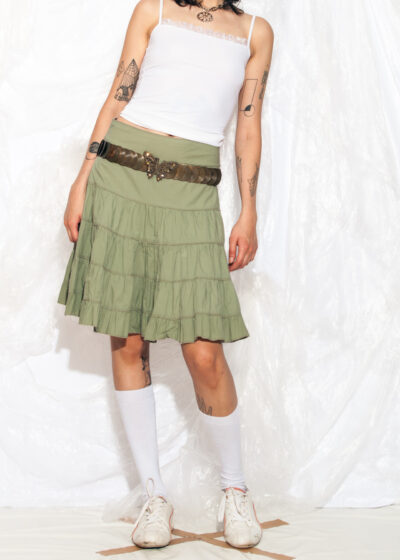Vintage Y2K Whimsigoth Embroidered Midi Skirt in Brown