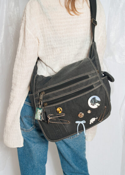 Reworked Y2K Canvas Messenger Bag with Charms and Pins