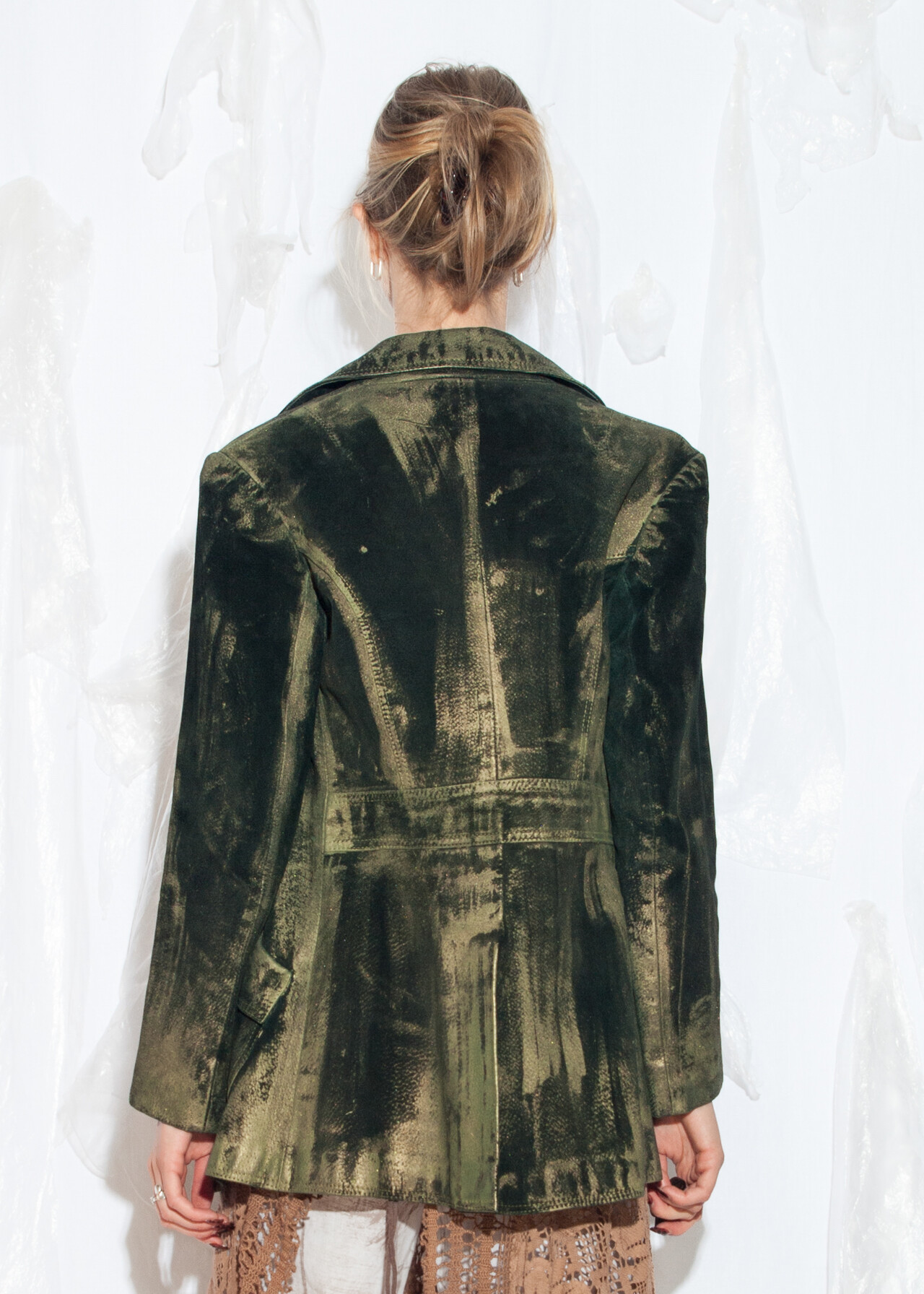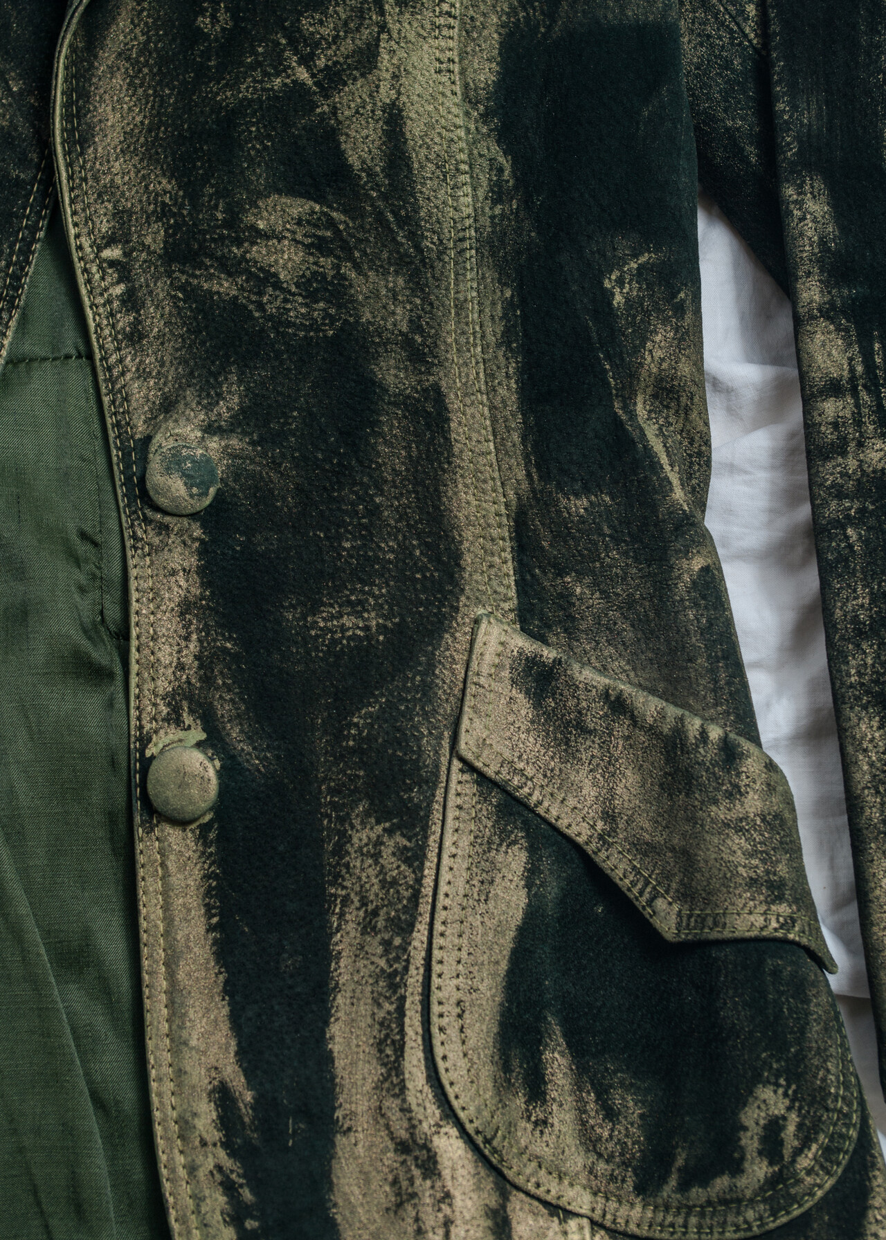 Vintage 70s Reworked Leather Jacket in Geen Hand-Painted