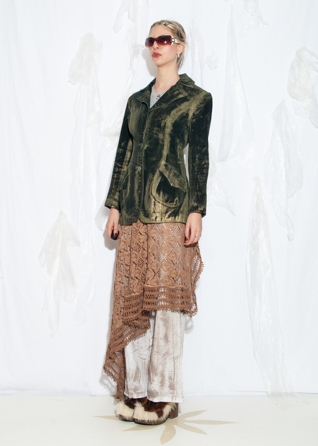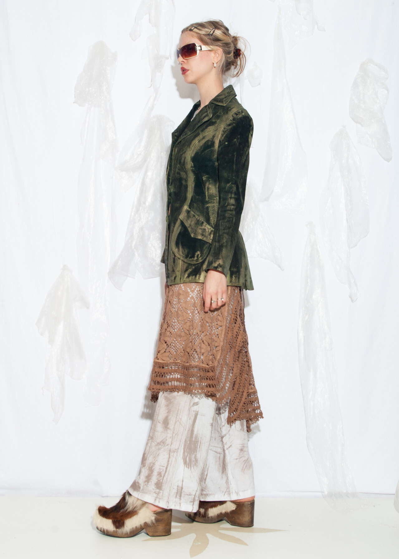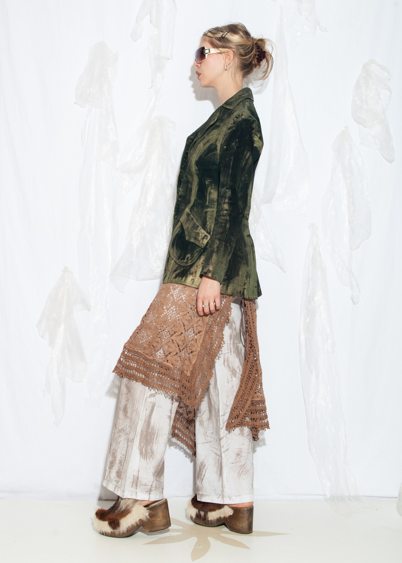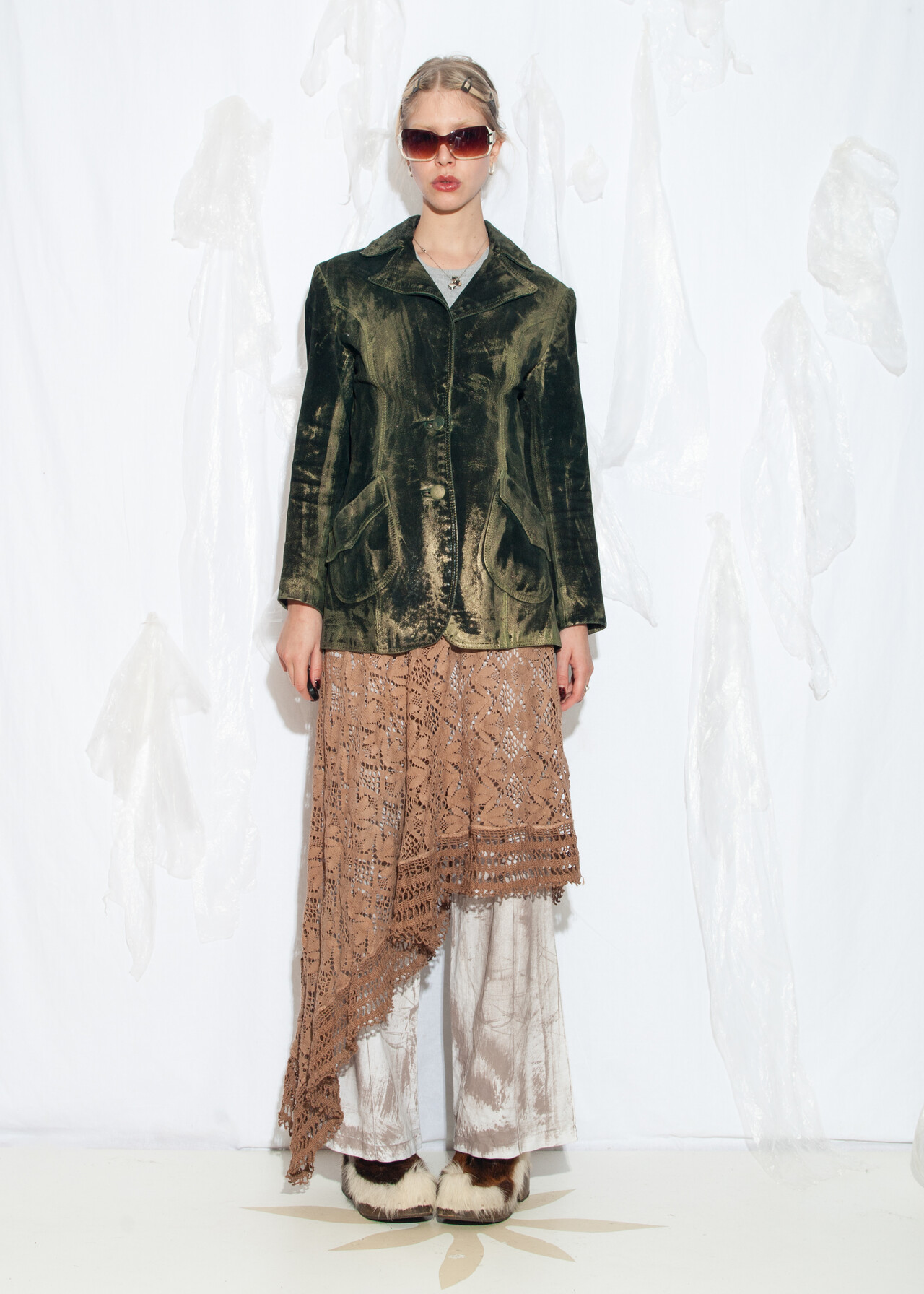 This reworked 70s vintage jacket is here to bring a groovy blast from the past. With a touch of disco fever and vibrant hand-painted accents, you’ll be ready to boogie ’till dawn.