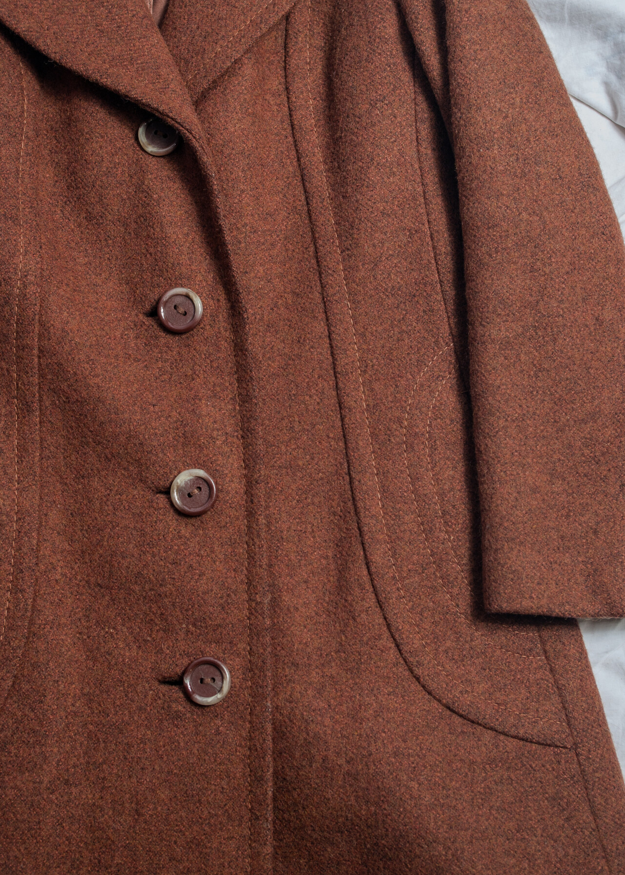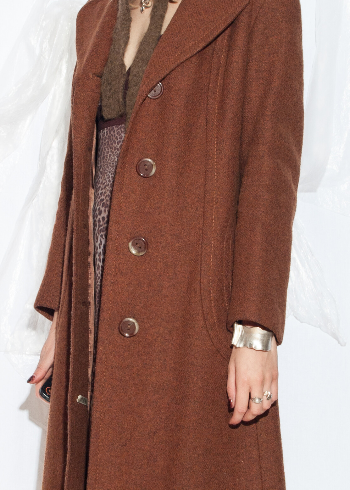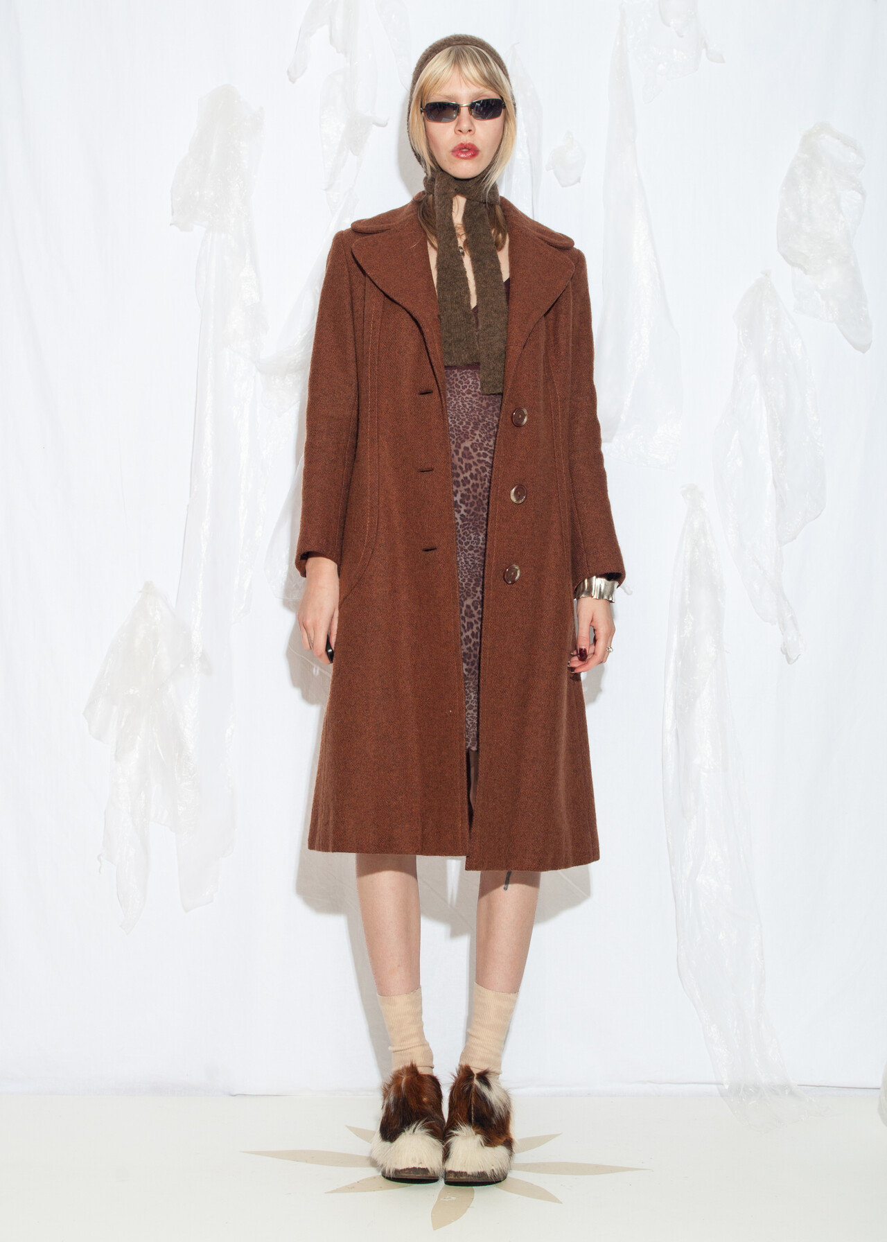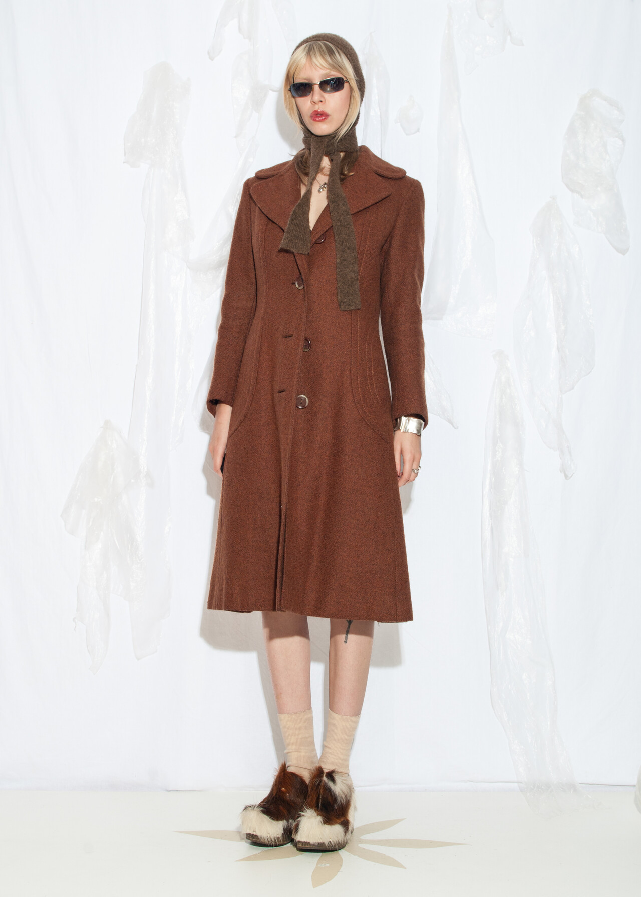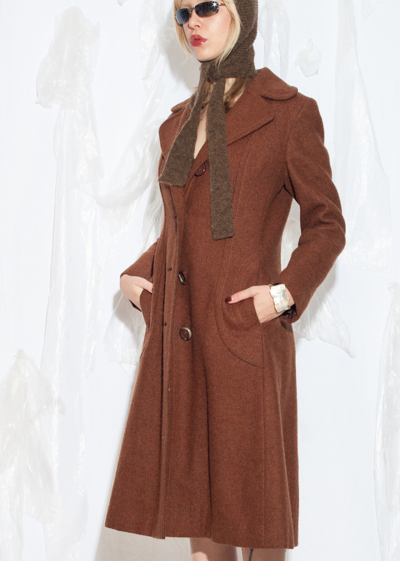 70s vintage wool coat – when staying warm means channeling your inner preppy time traveler with a dash of earth brown flair.
