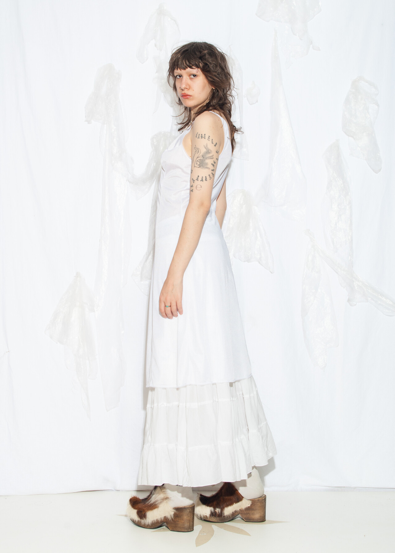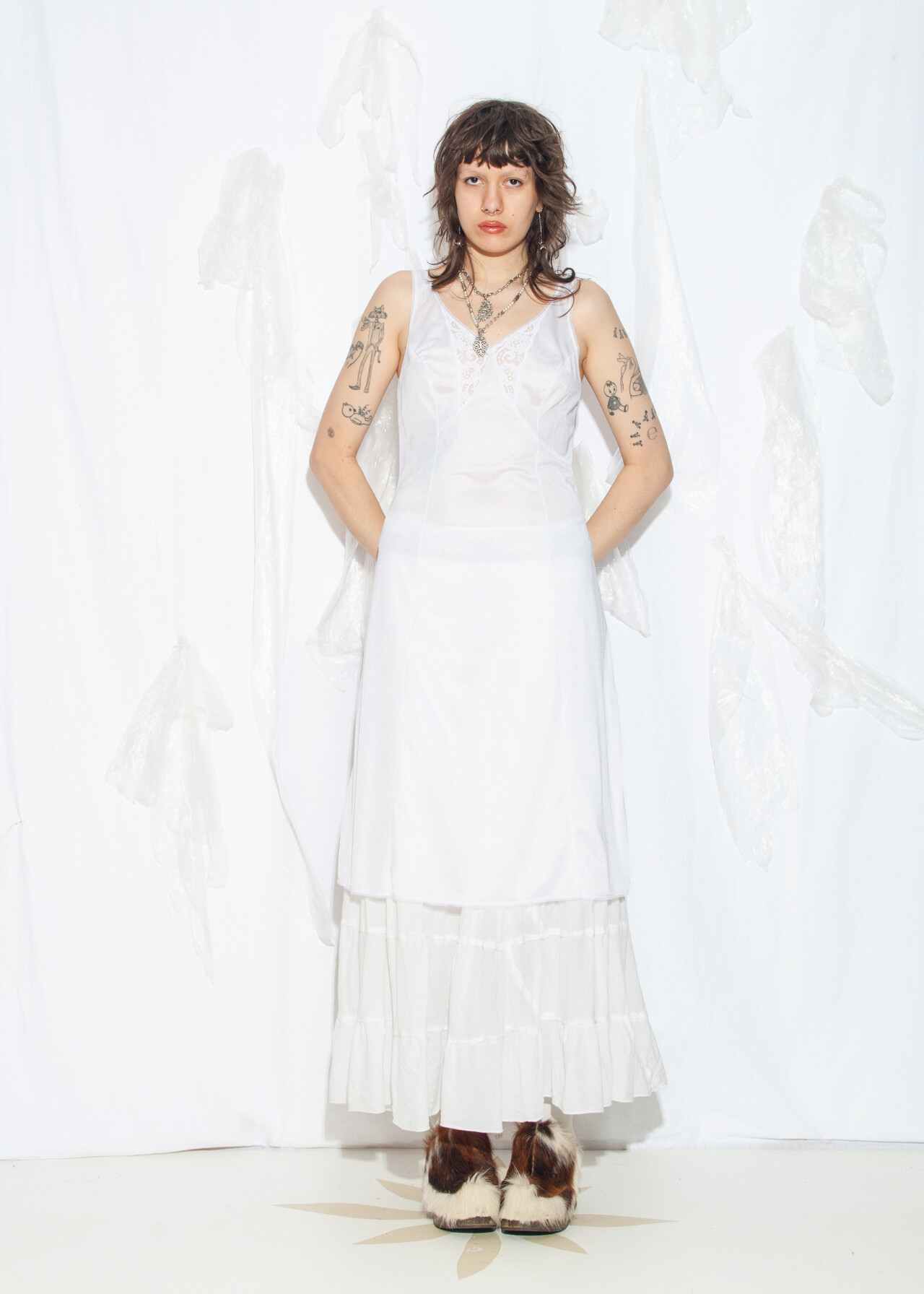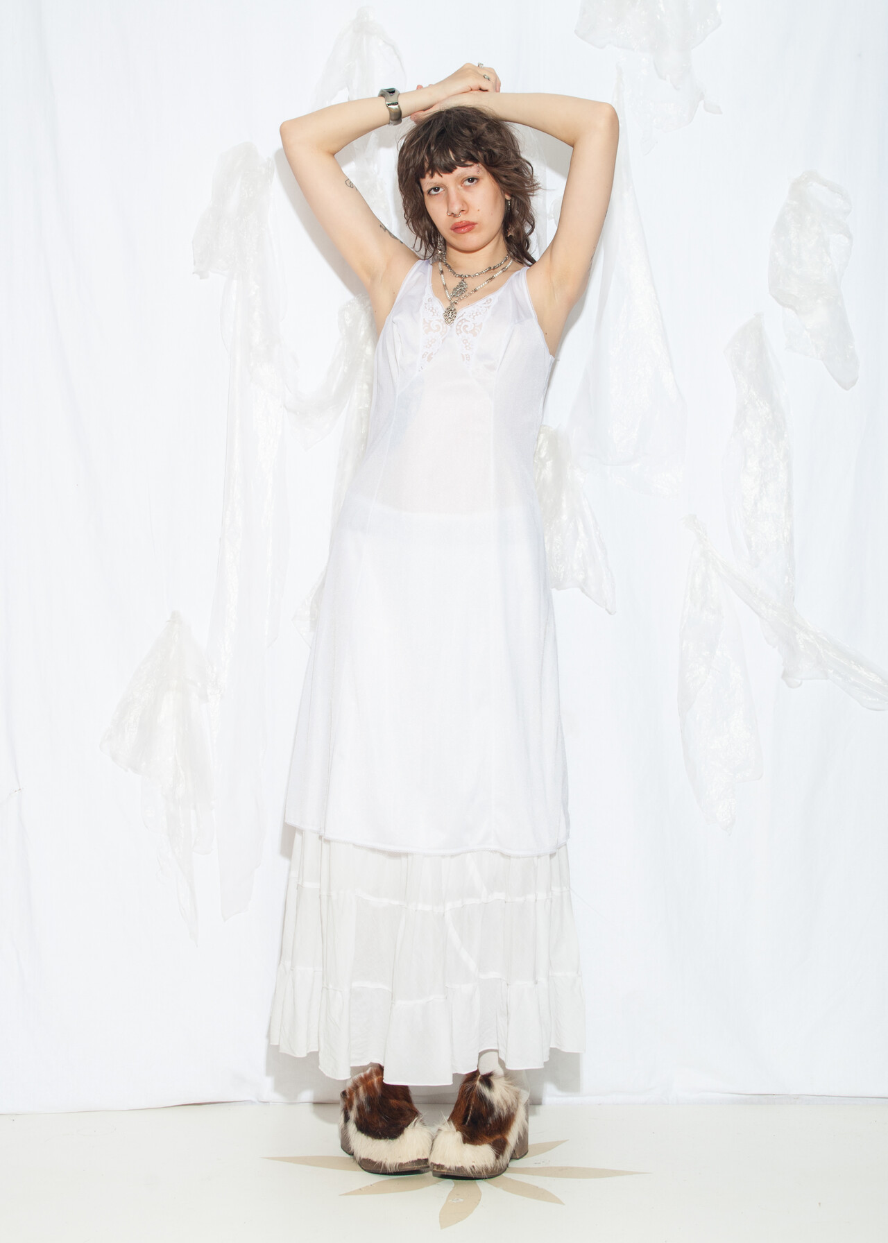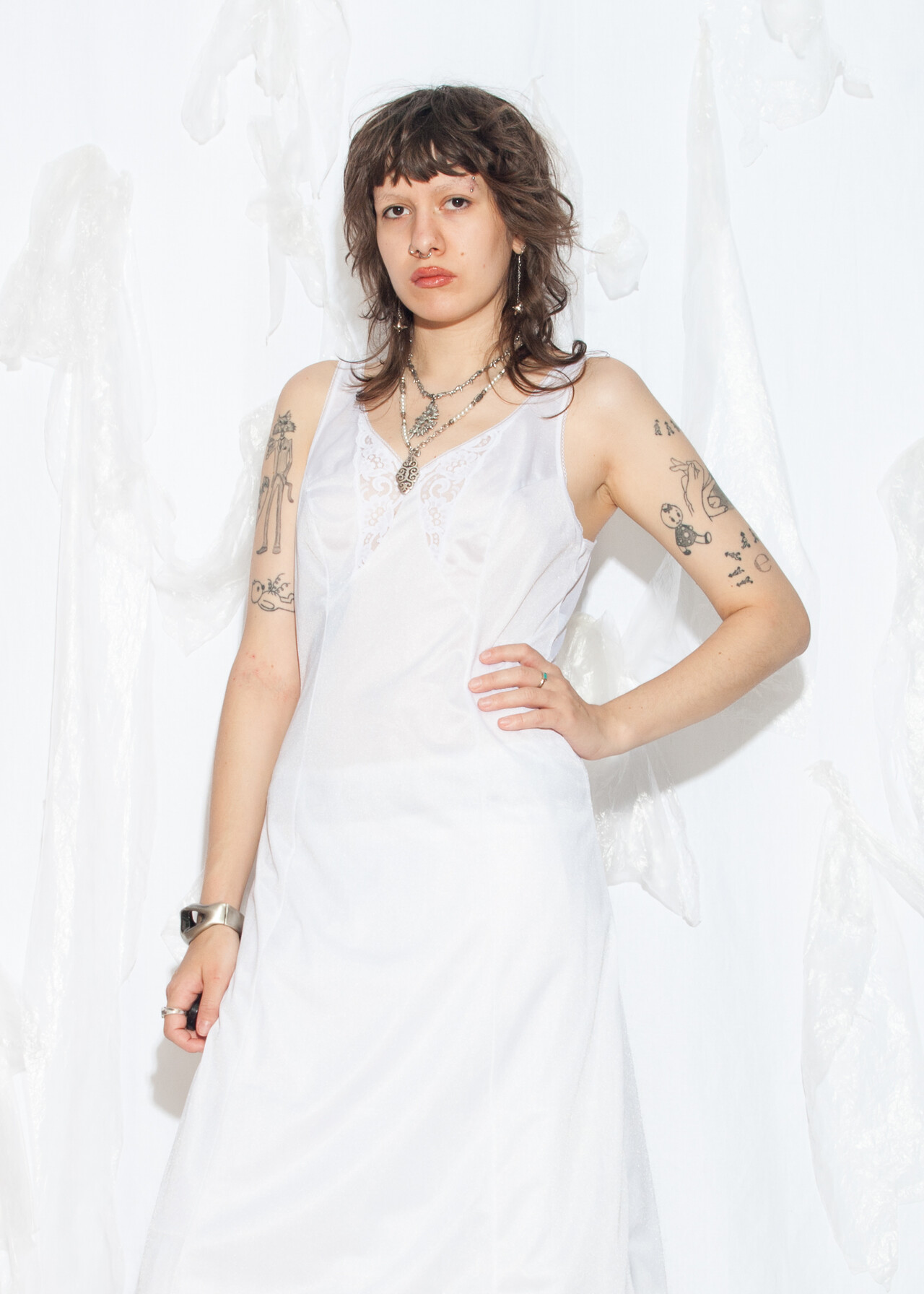 This 70s vintage dress is your fairycore grunge dream wrapped in a white slip, ready to make festival memories while whispering sweet nothings of nostalgia.