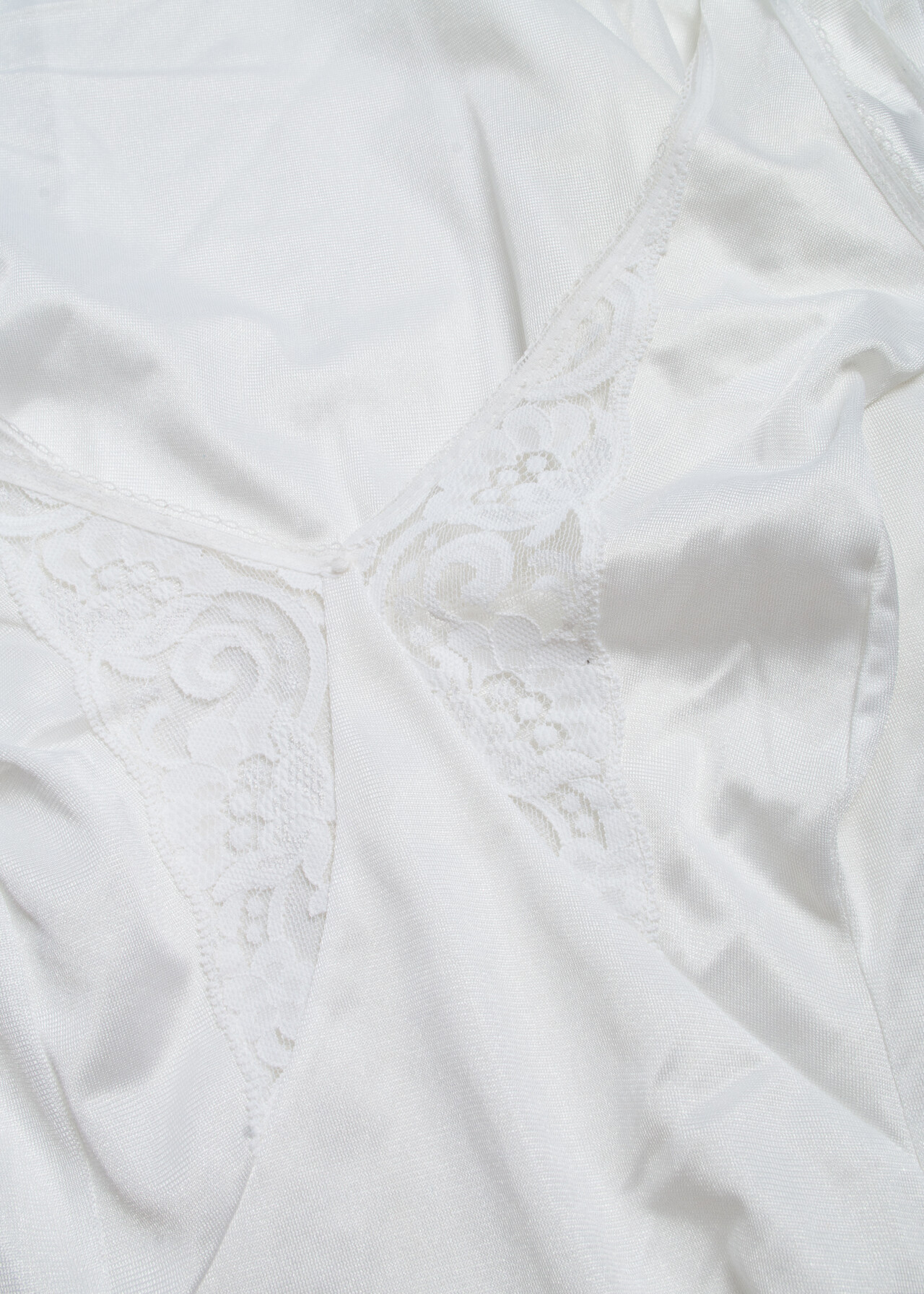 Vintage 70s Slip Midi Dress in White with Lace