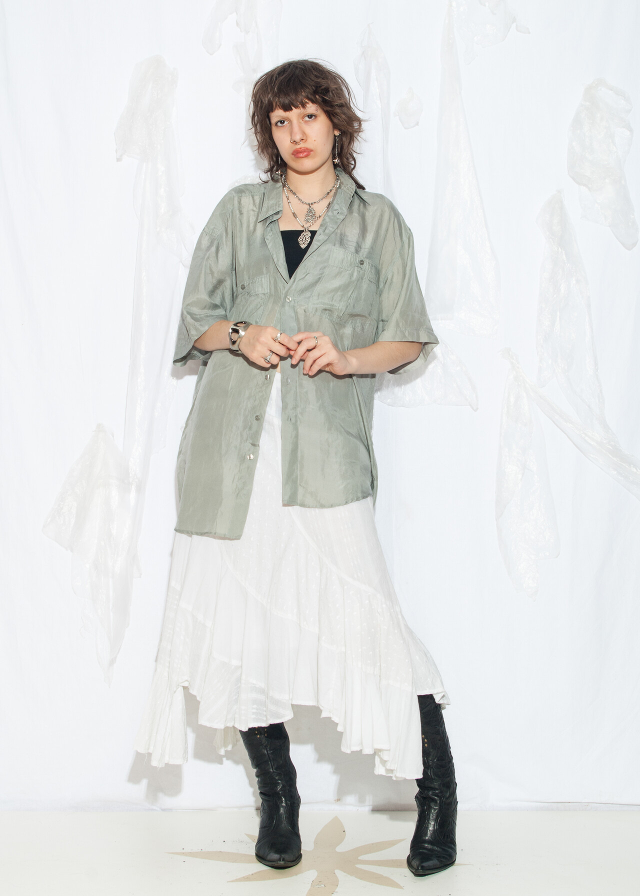 This 90s vintage oversized shirt is the ultimate statement piece that’ll make you feel like you’re channeling your inner grunge fashion guru in pure silk!