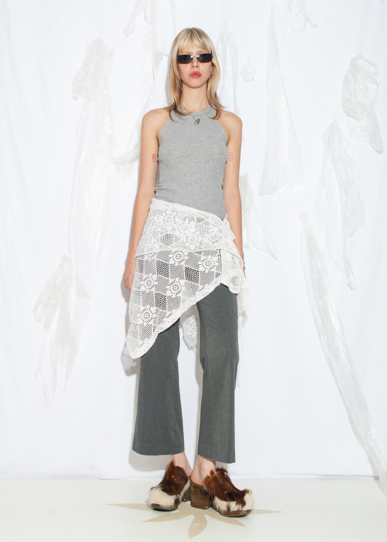 60s vintage crocheted doily skirt – a romantic style marvel reworked from a crochet lace tablecloth that’s more fun than your grandma’s knitting club!