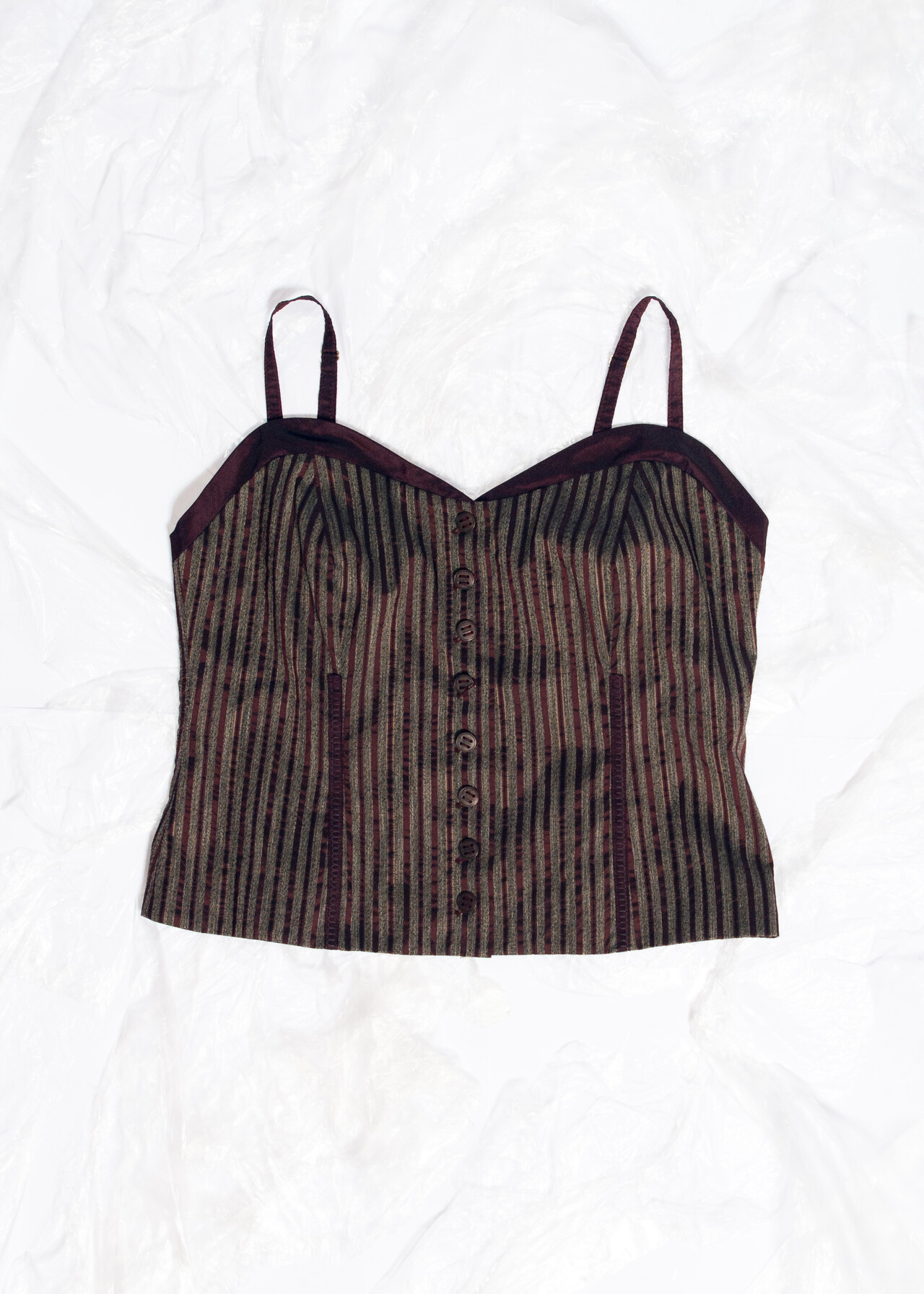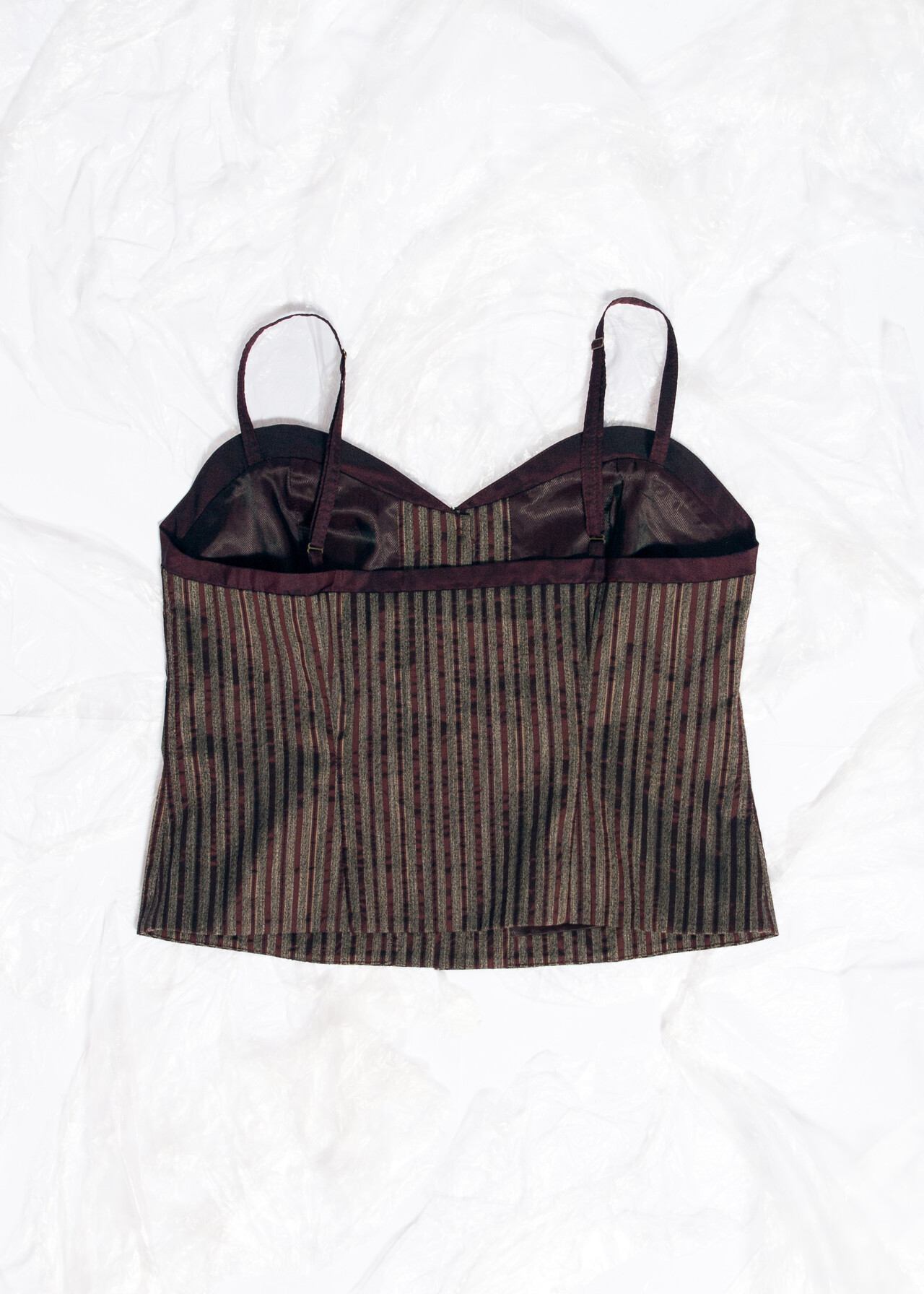 Vintage Y2K Corset Top in Grey and Maroon Striped