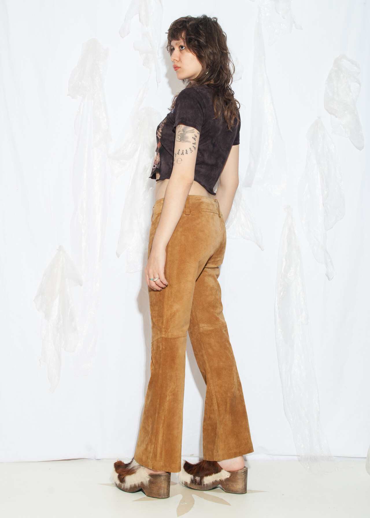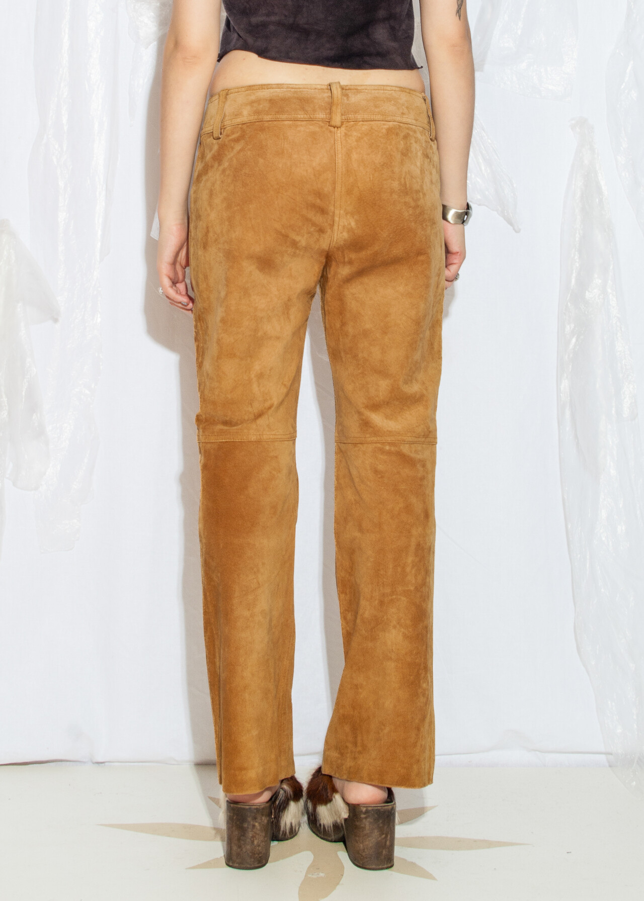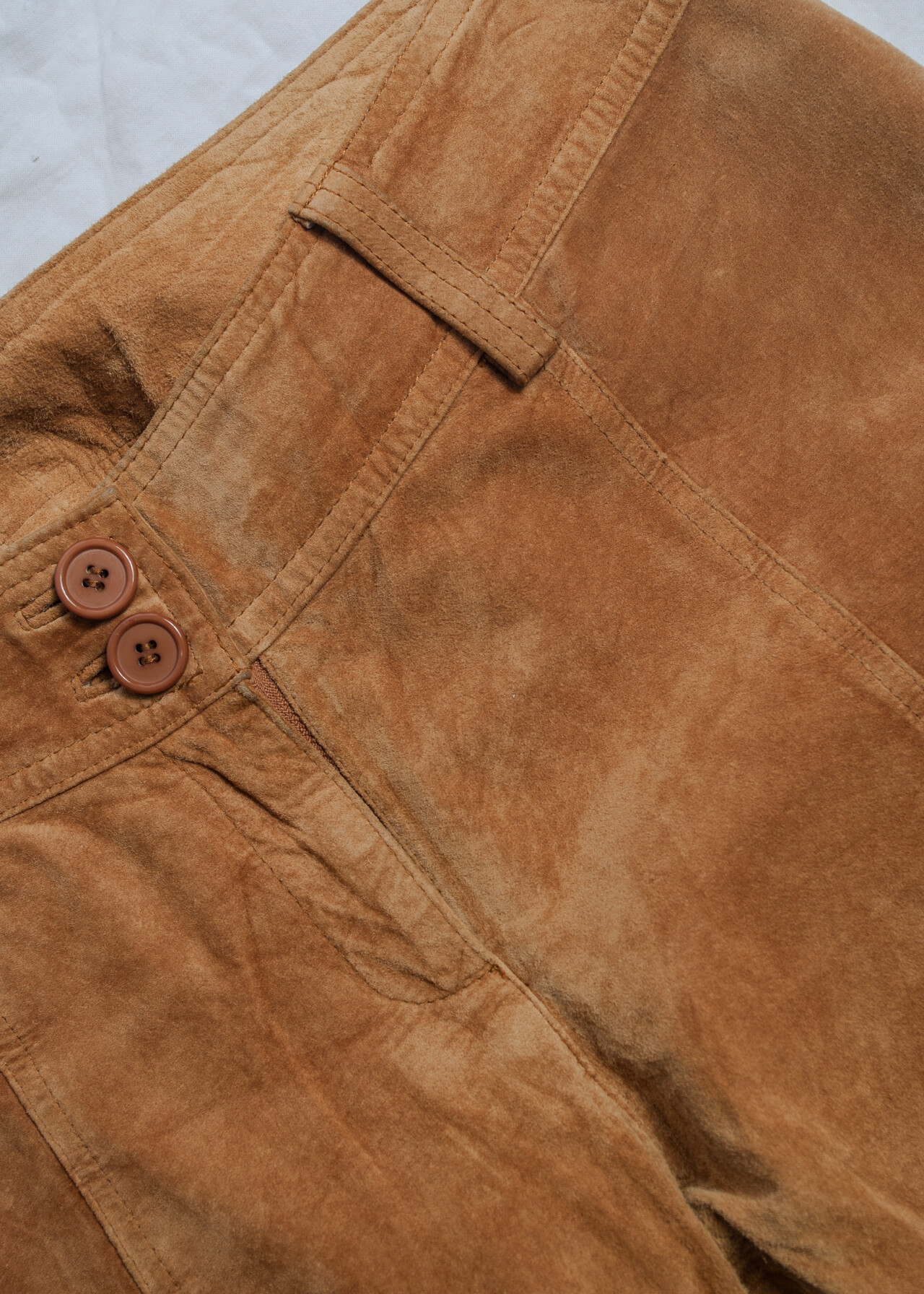 These Y2K vintage trousers are like stepping into a time machine full of low-waist, earthy brown, real leather suede goodness!