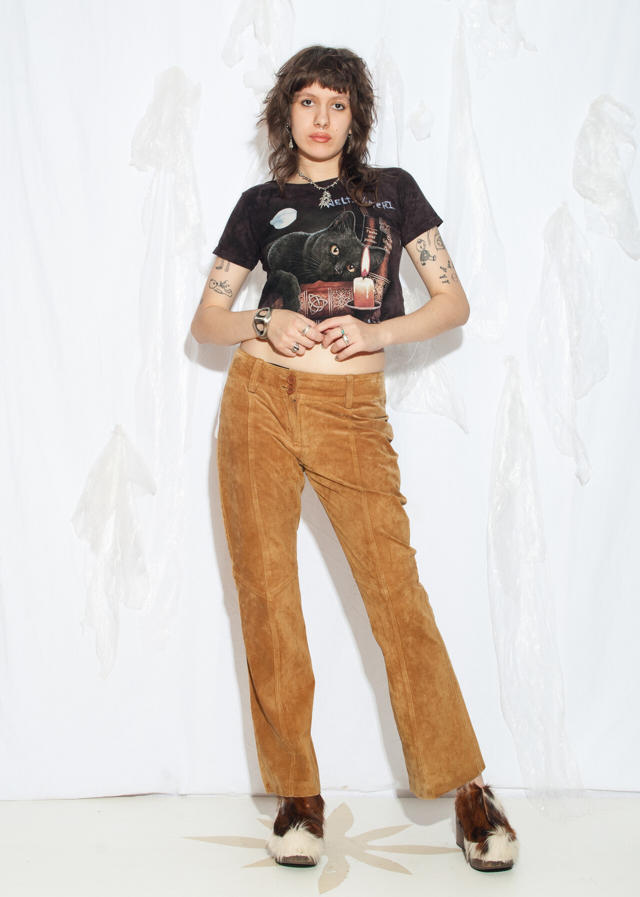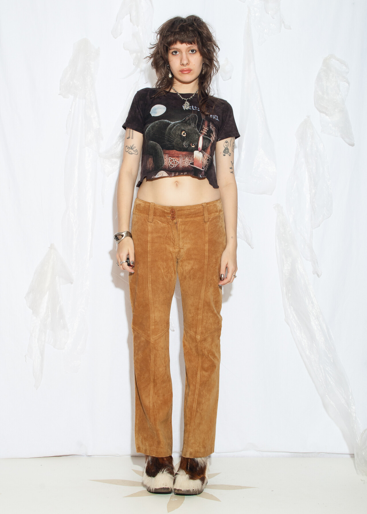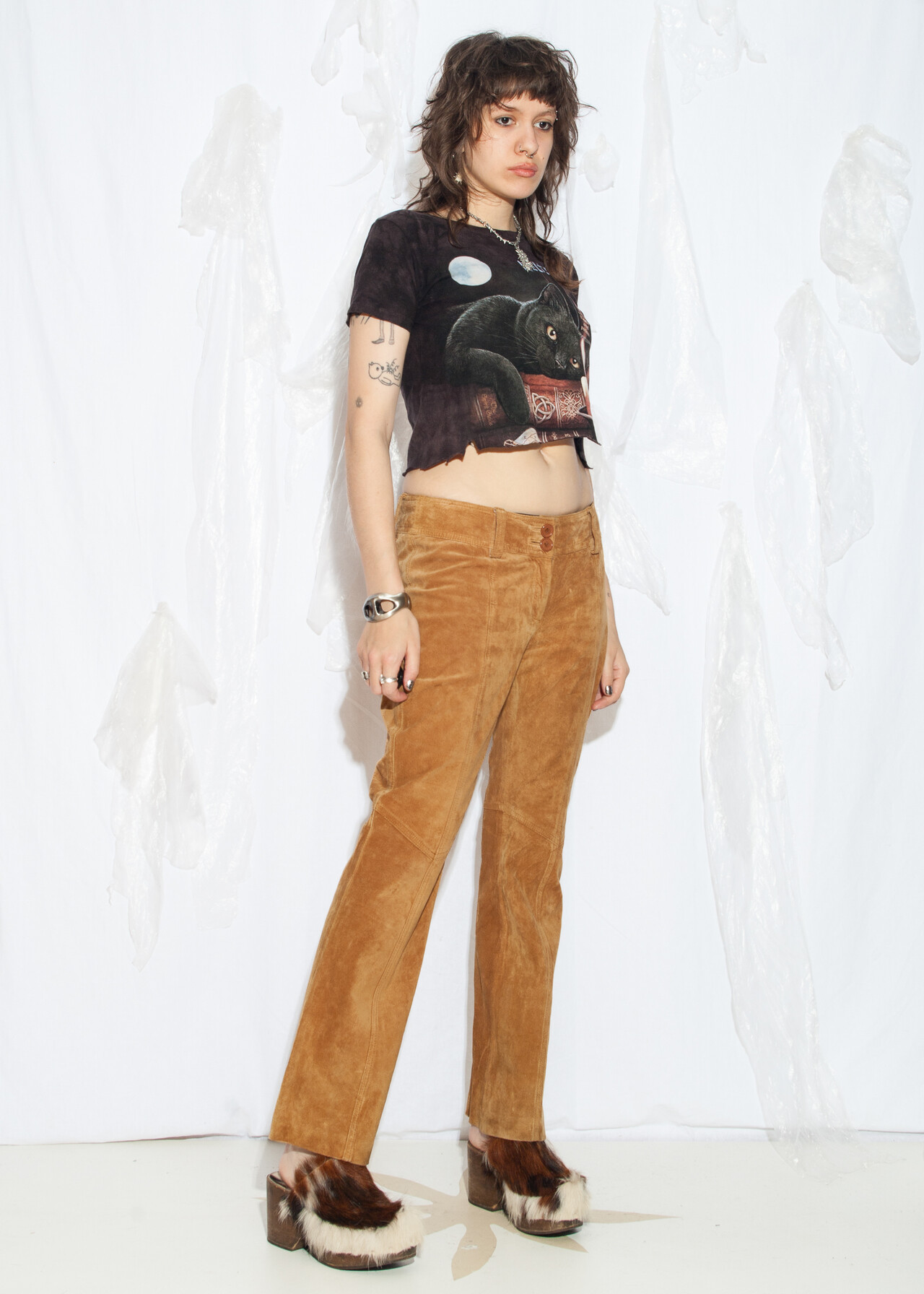 These Y2K vintage trousers are like stepping into a time machine full of low-waist, earthy brown, real leather suede goodness!