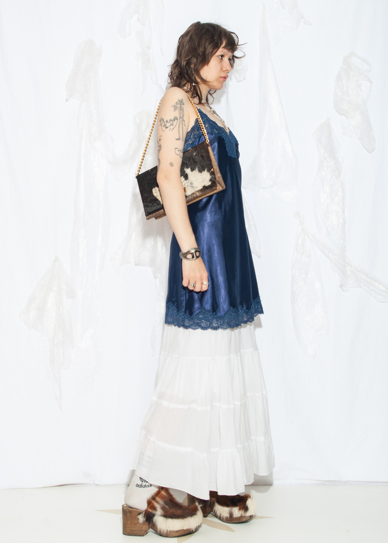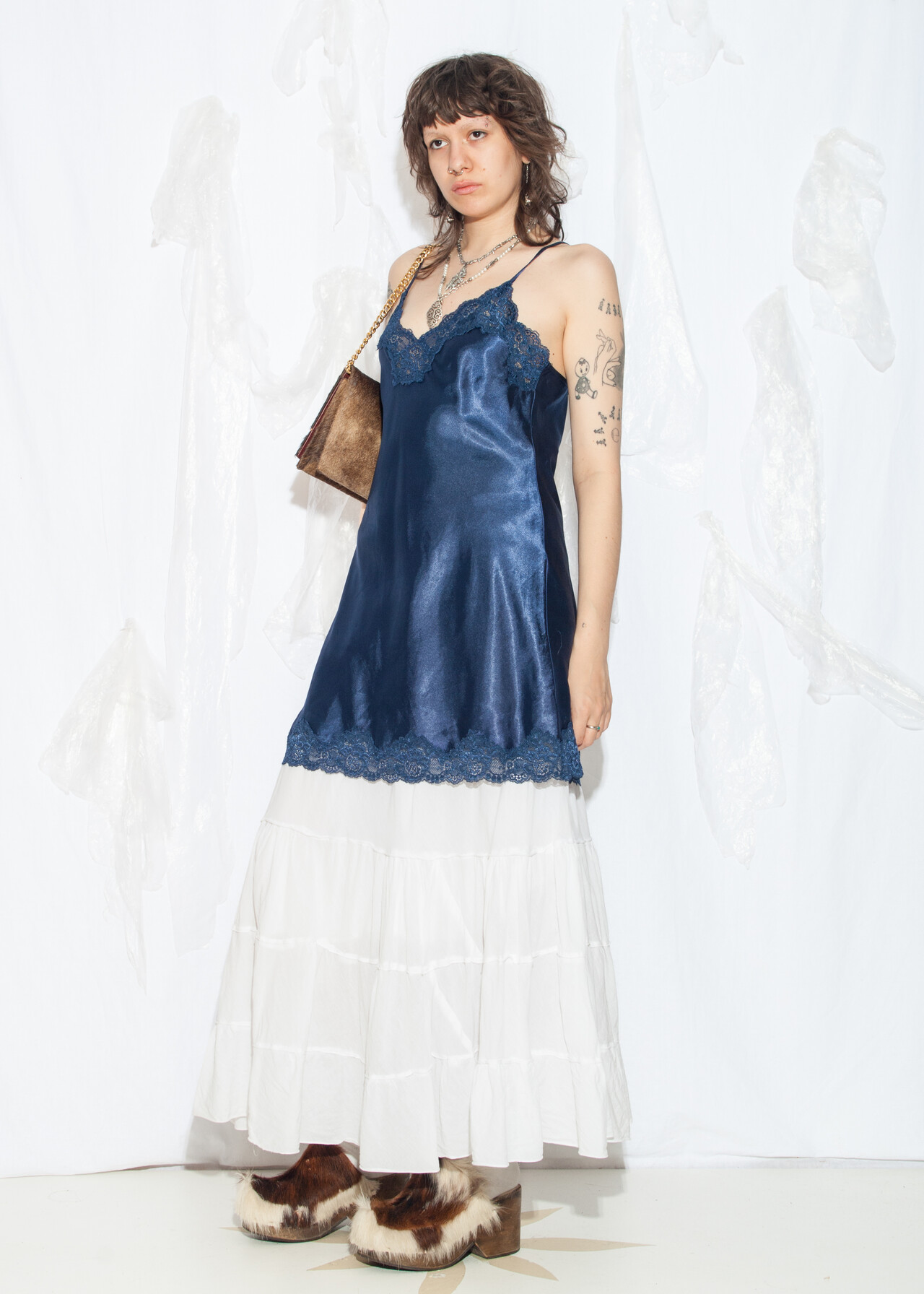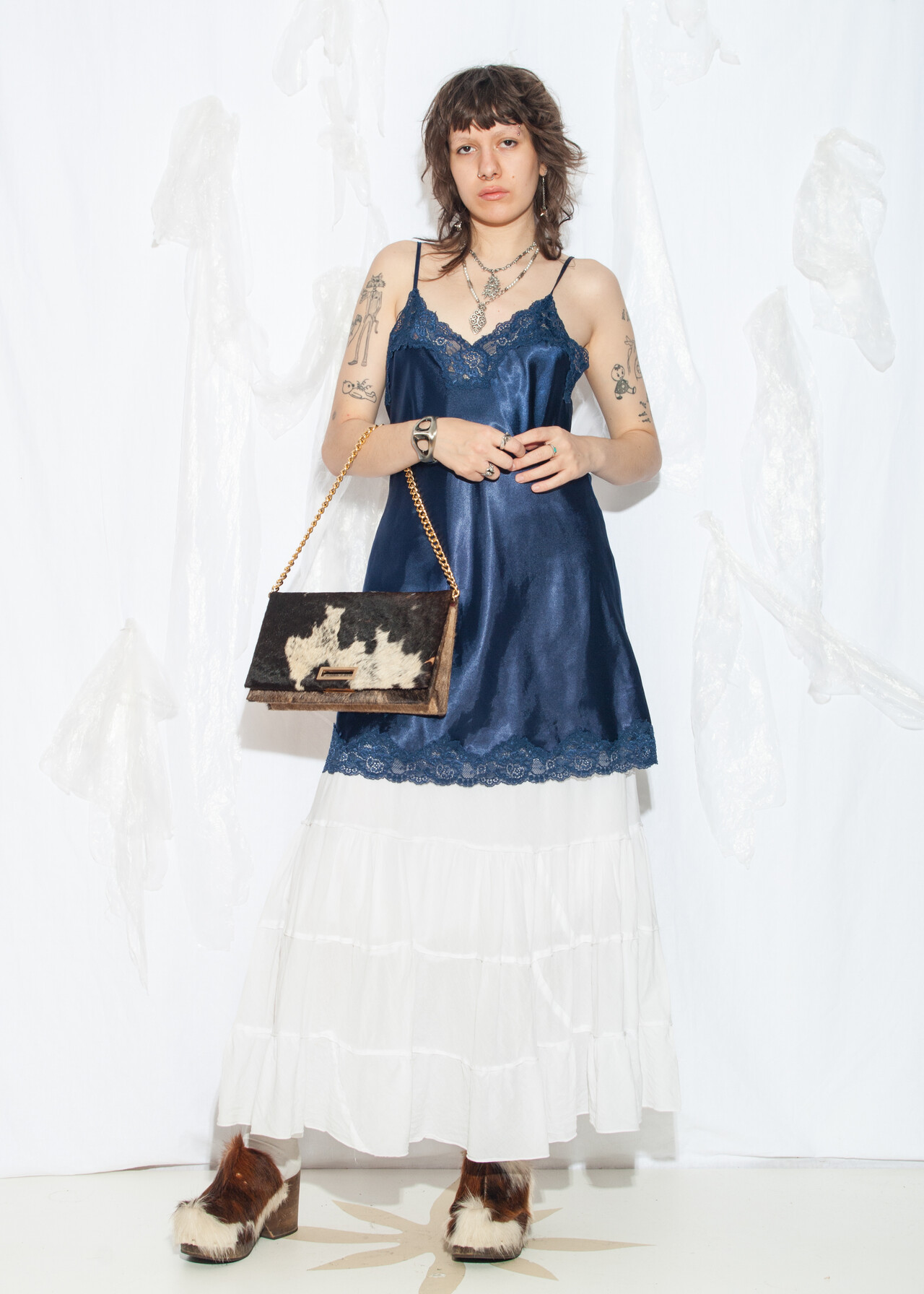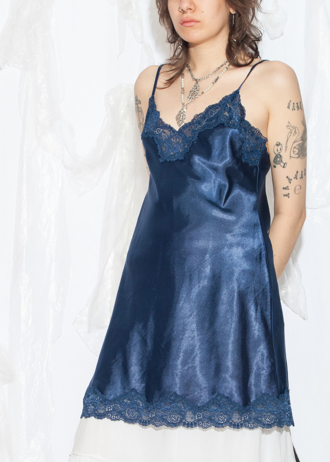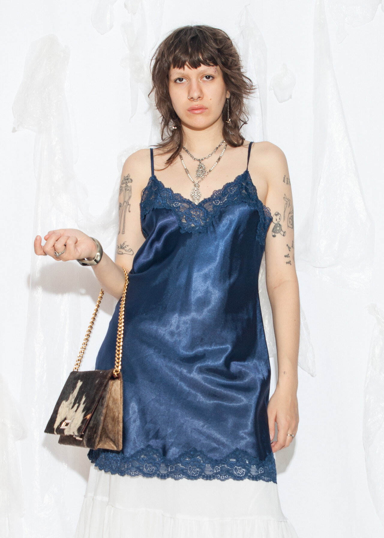 This Y2K vintage satin slip dress is your ticket to whimsigoth wonderland, where every night feels like a slumber party with your favorite 2000s icons.