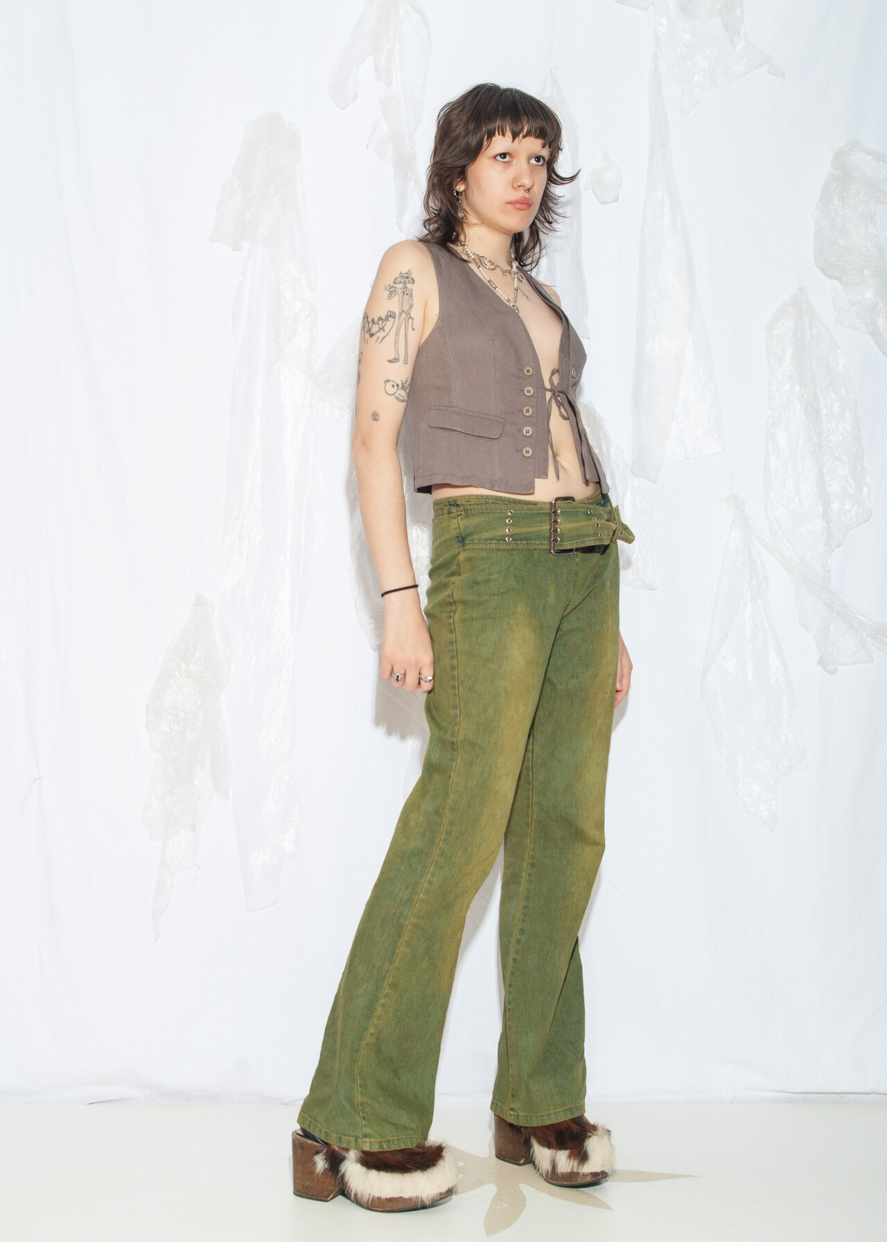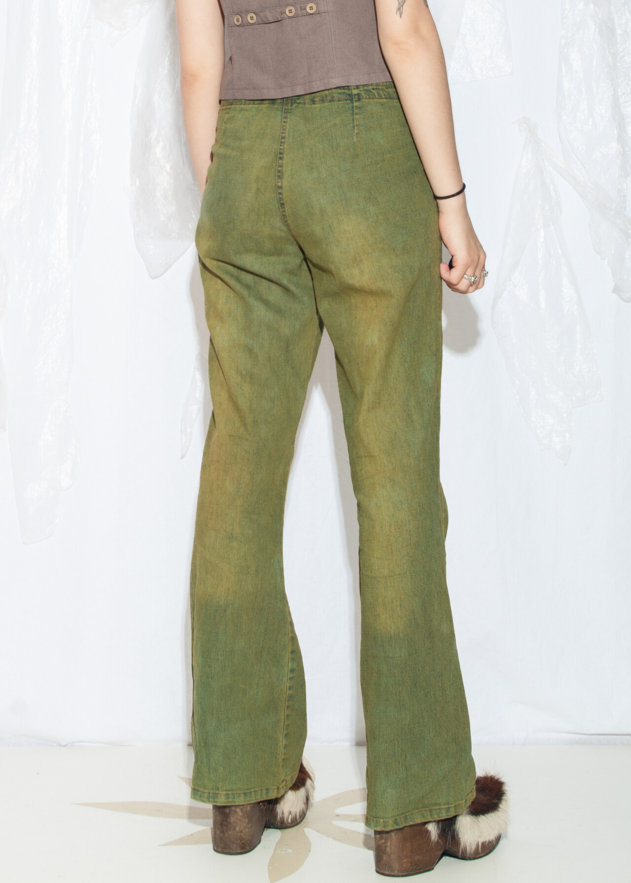 Reworked Vintage Y2K Flare Jeans in Mud Green
