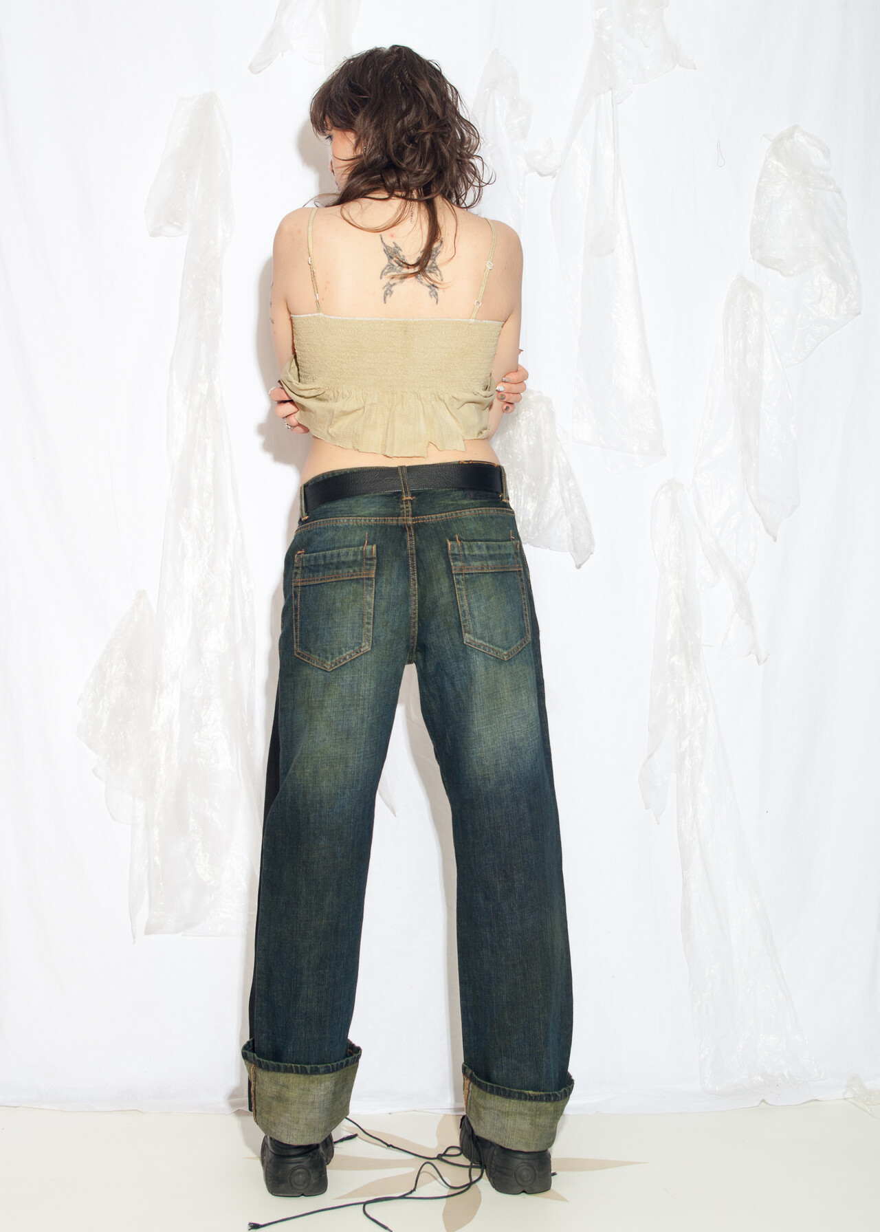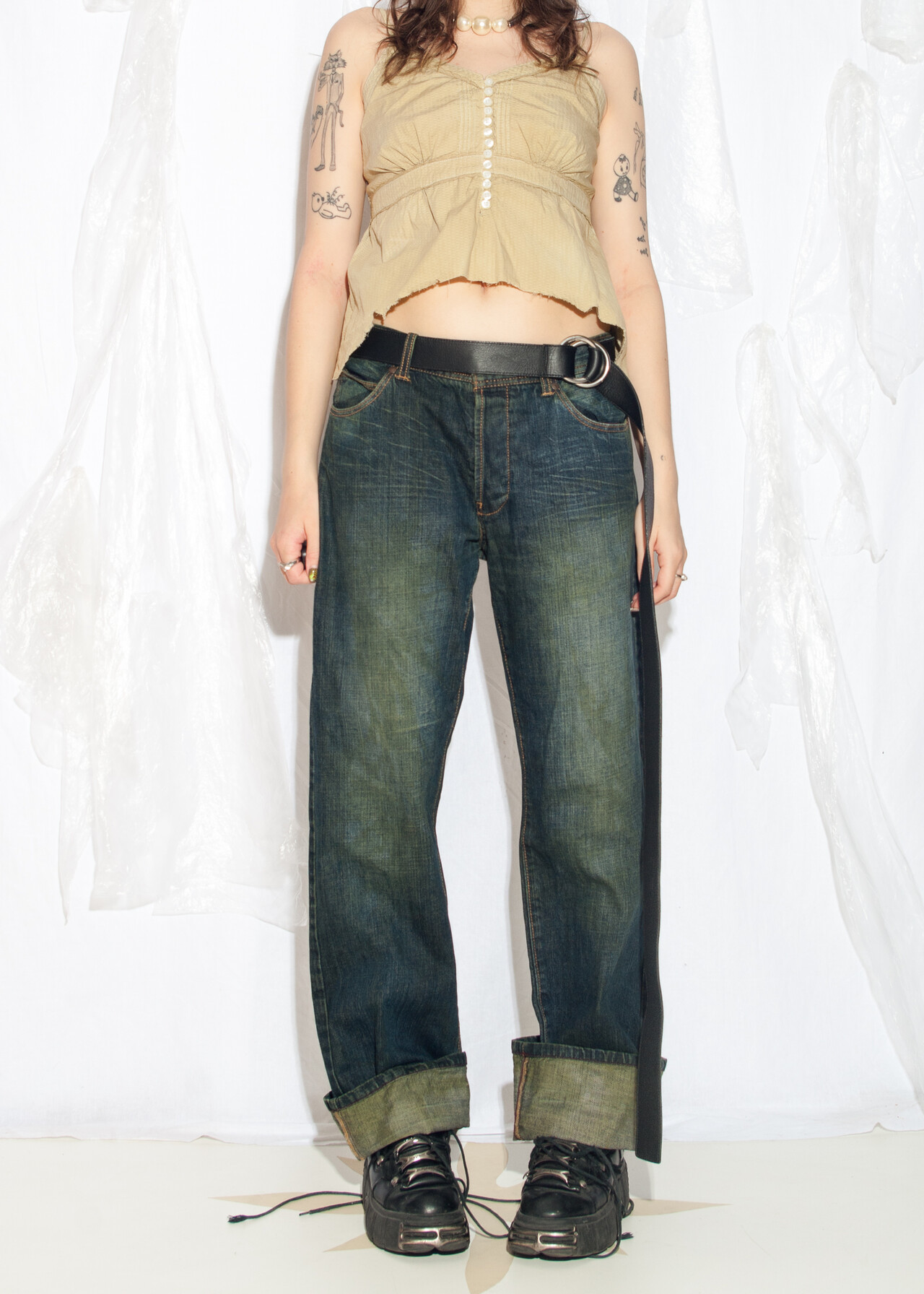 These Y2K vintage jeans are wide-leg wonders with a dirty mud wash that’ll have you strutting like it’s 2003 and you’re the star of your own reality show!