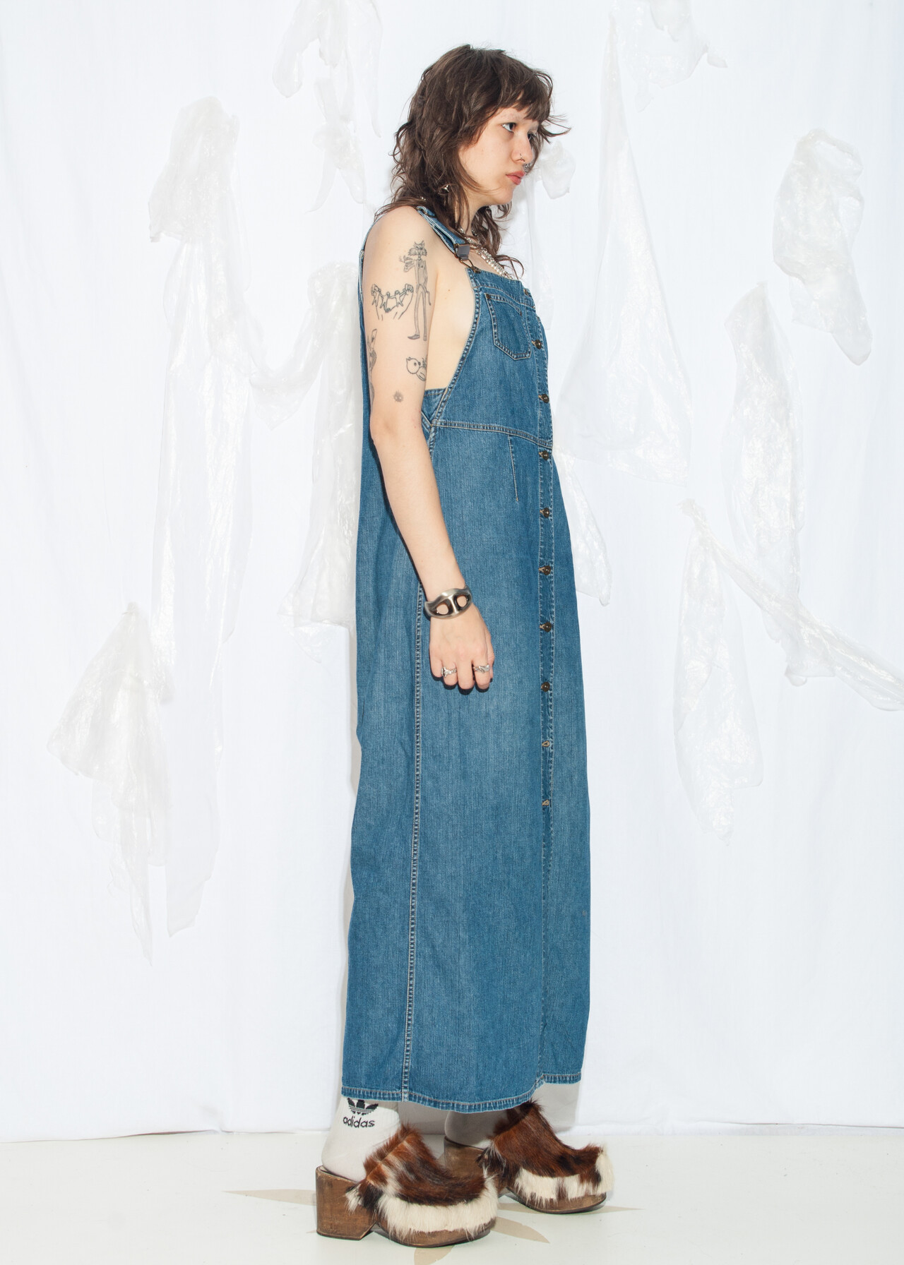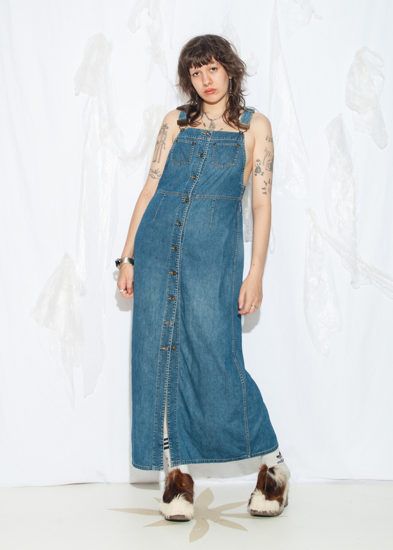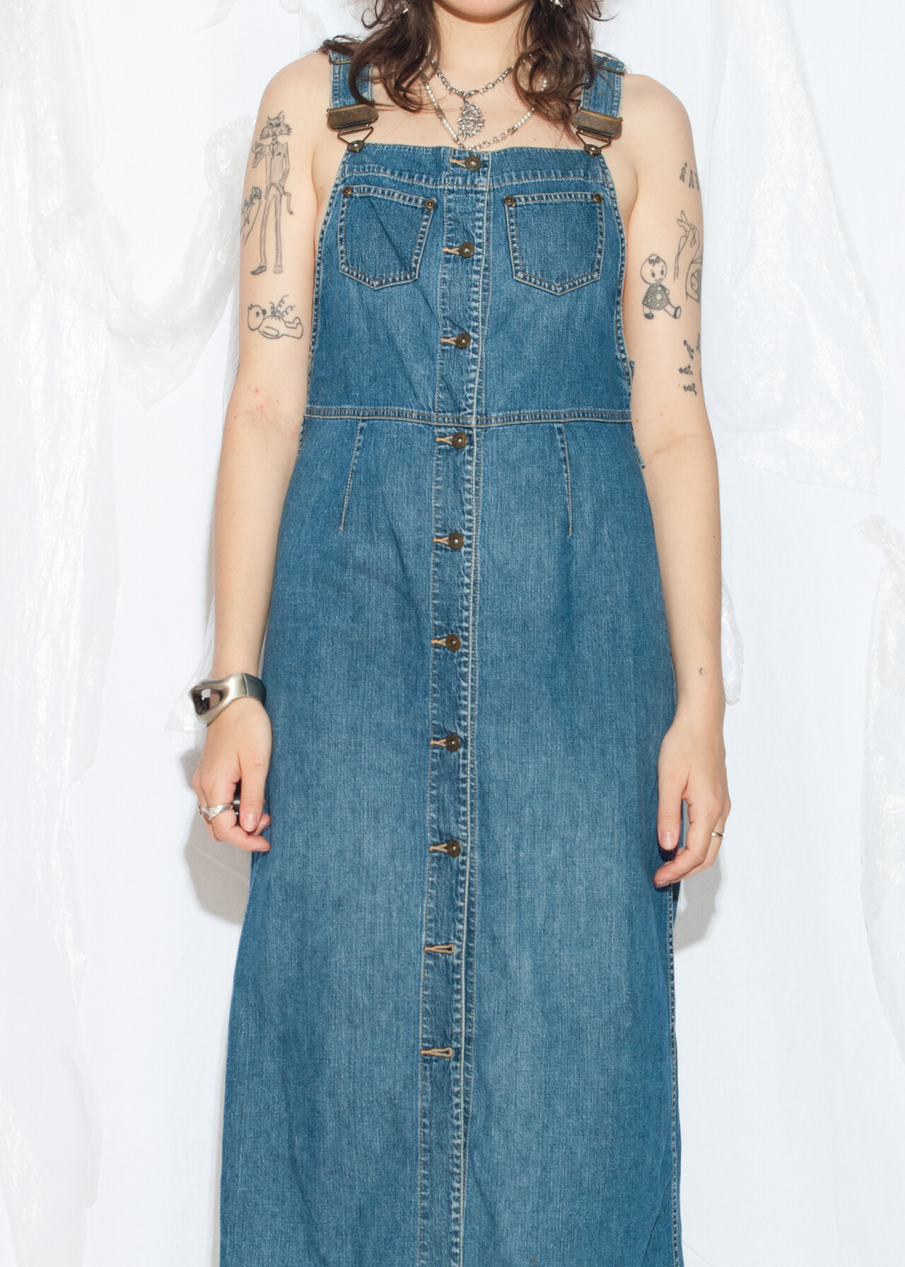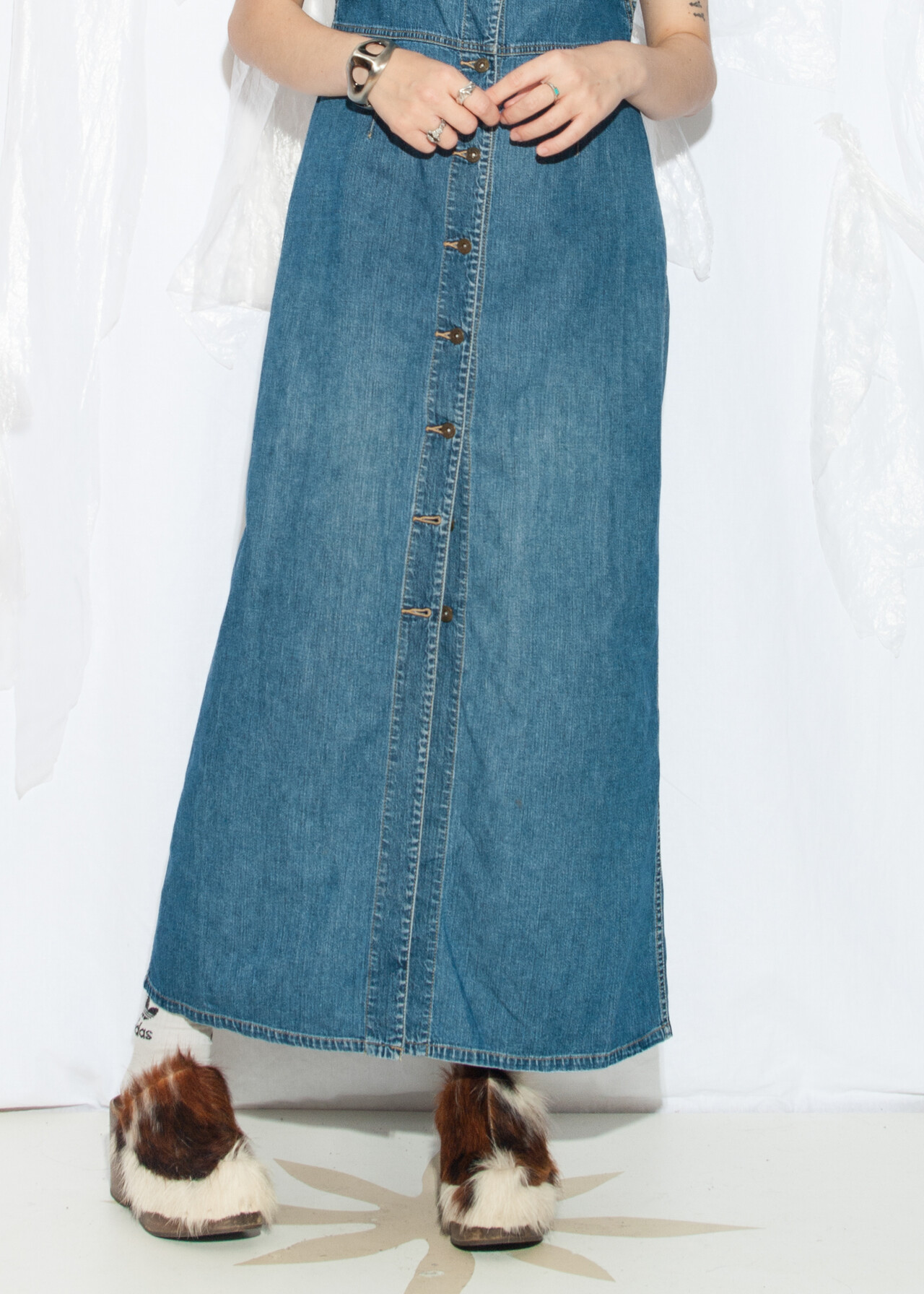 This 90s vintage denim maxi dress by Liz Claiborne is the grunge style outfit you never knew you needed, ready to make your wardrobe feel like it just popped straight out of a 90s teen movie montage.