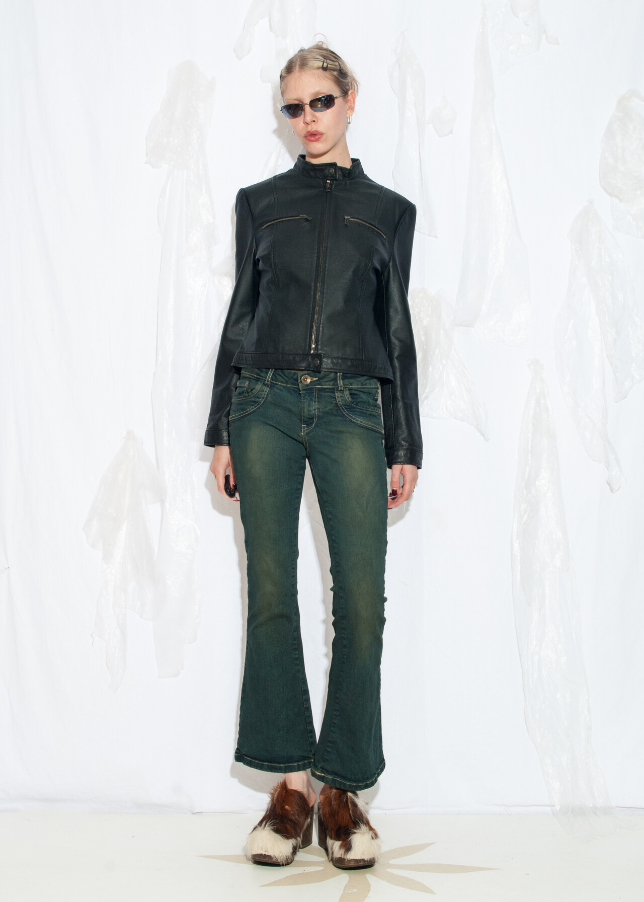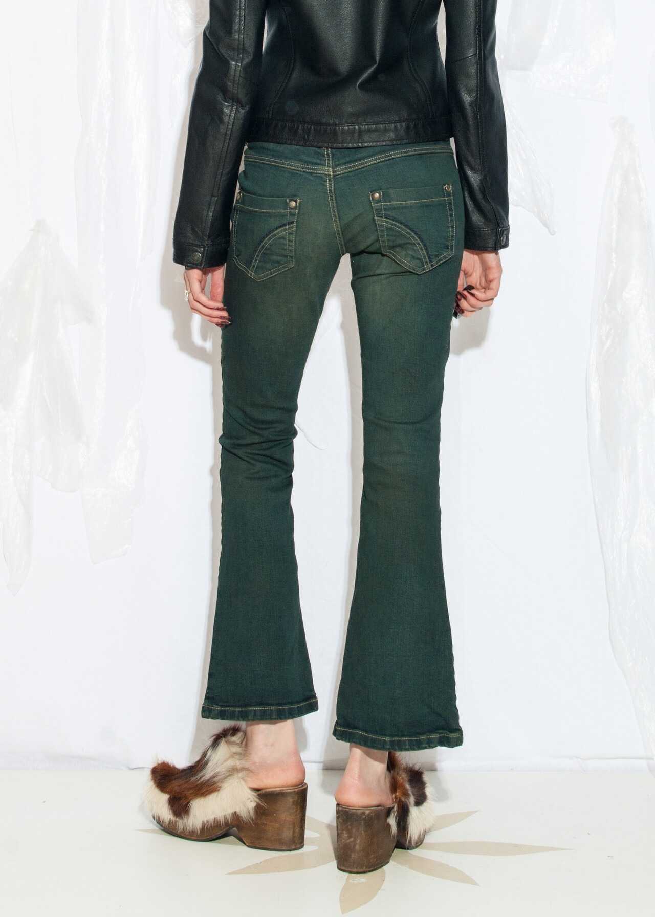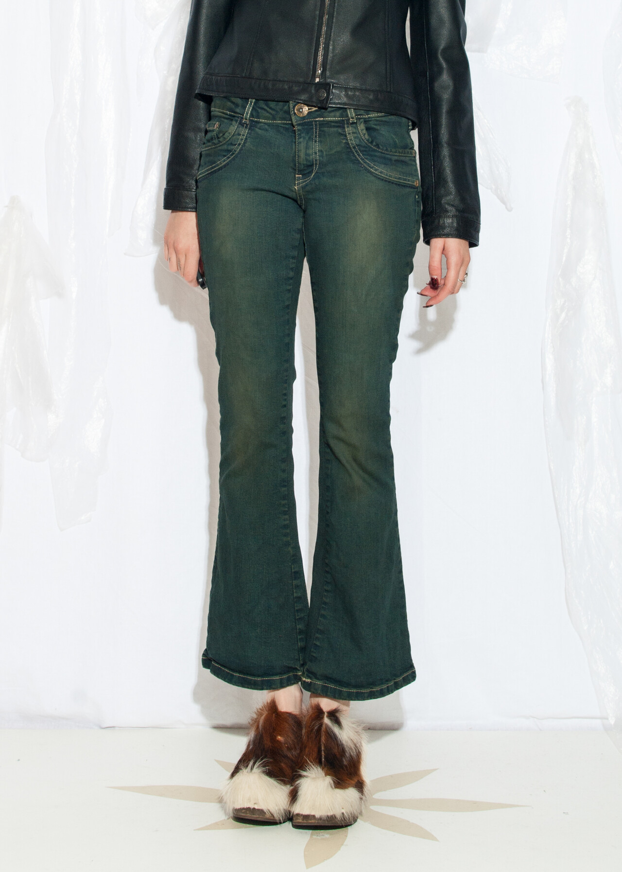 These Y2K vintage jeans are the whimsigoth dream come true with their overdyed green hue and bootcut flair, making you feel like you’re strutting straight out of a 2000s music video!