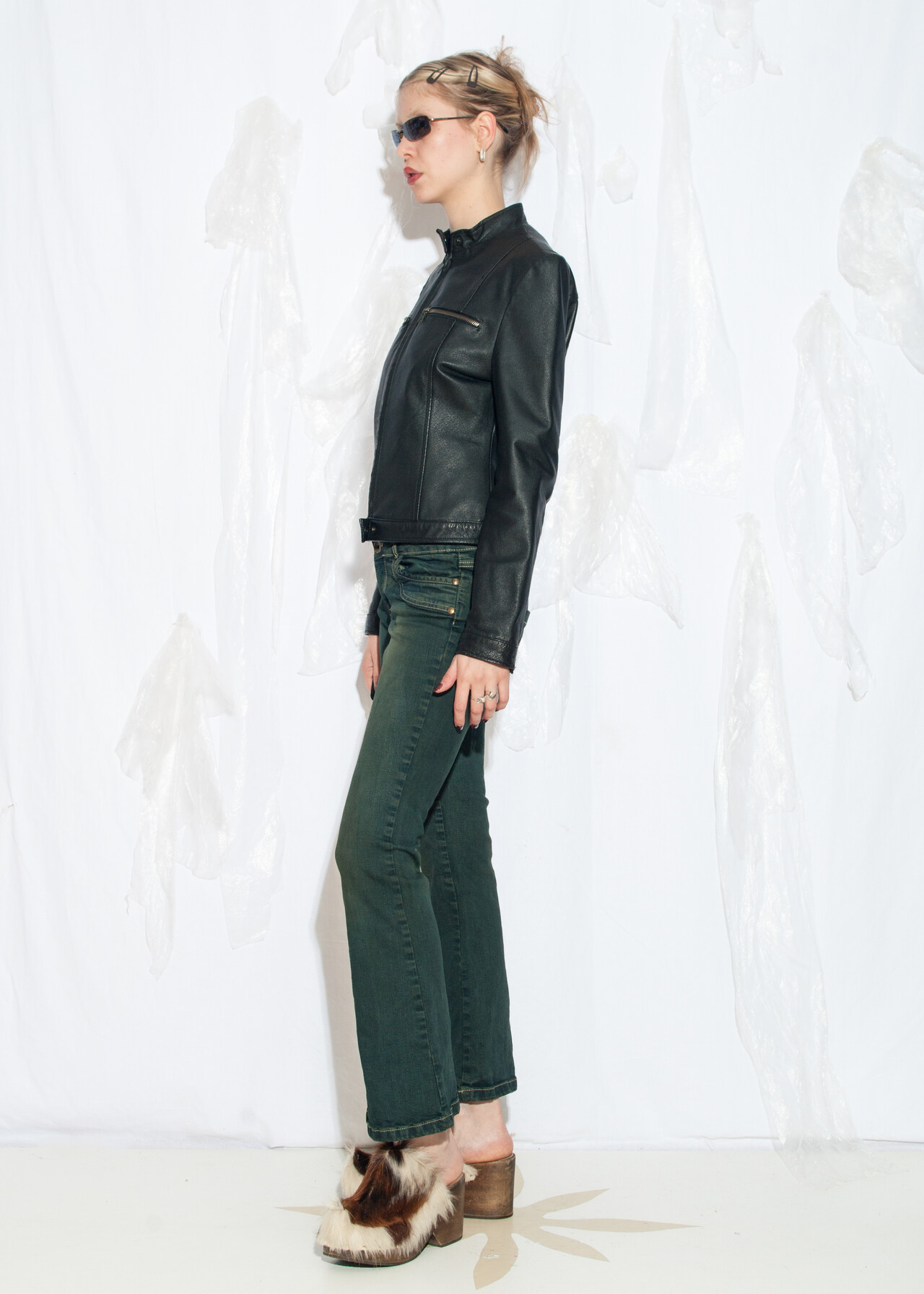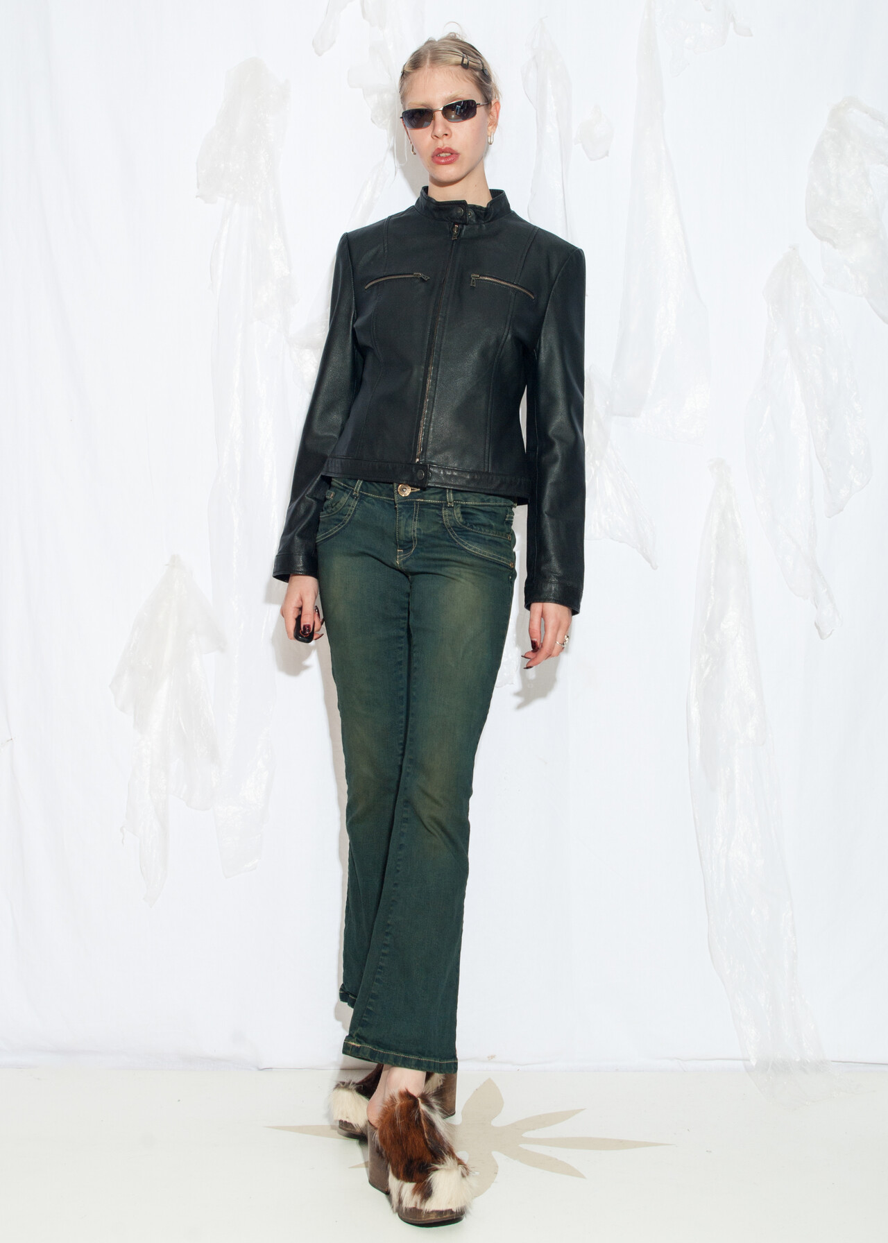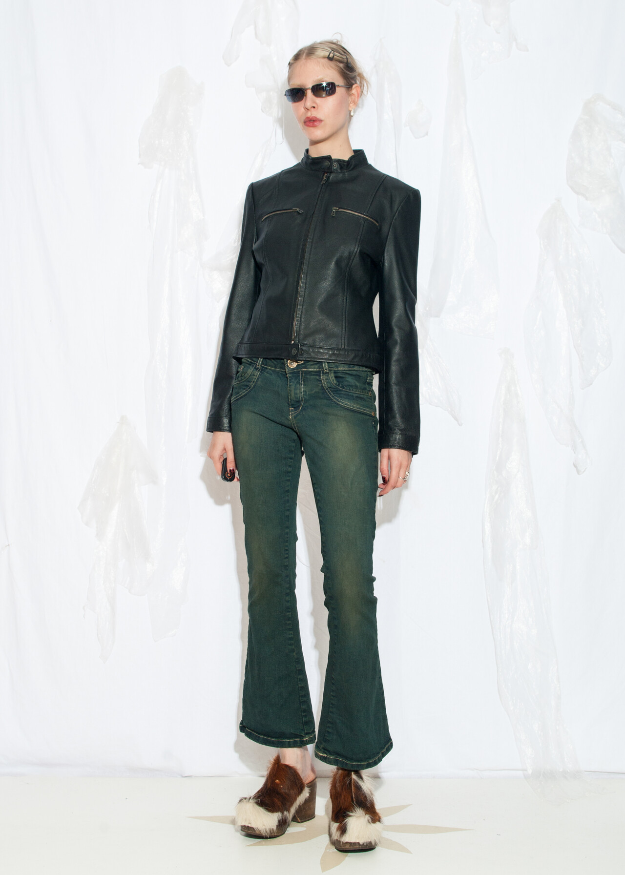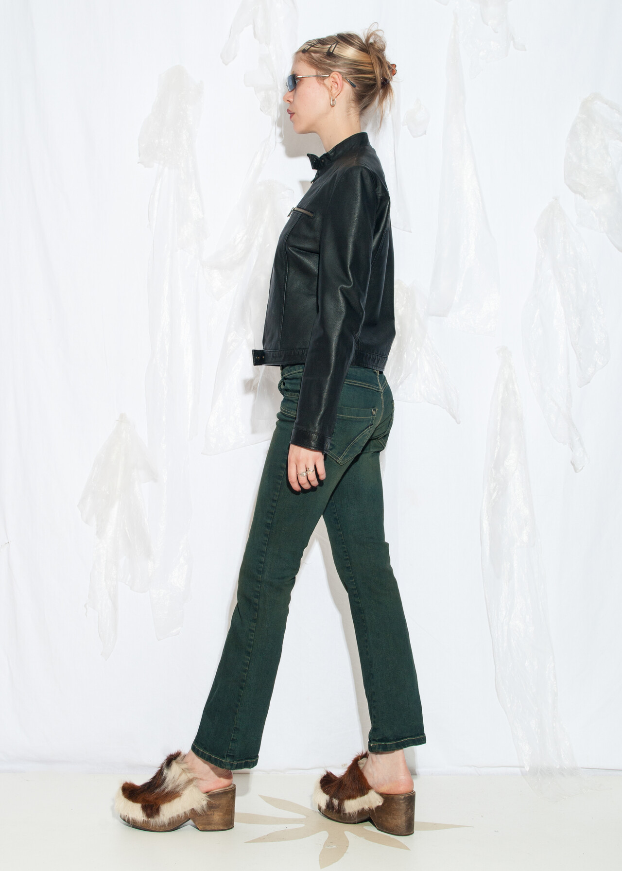 These Y2K vintage jeans are the whimsigoth dream come true with their overdyed green hue and bootcut flair, making you feel like you’re strutting straight out of a 2000s music video!