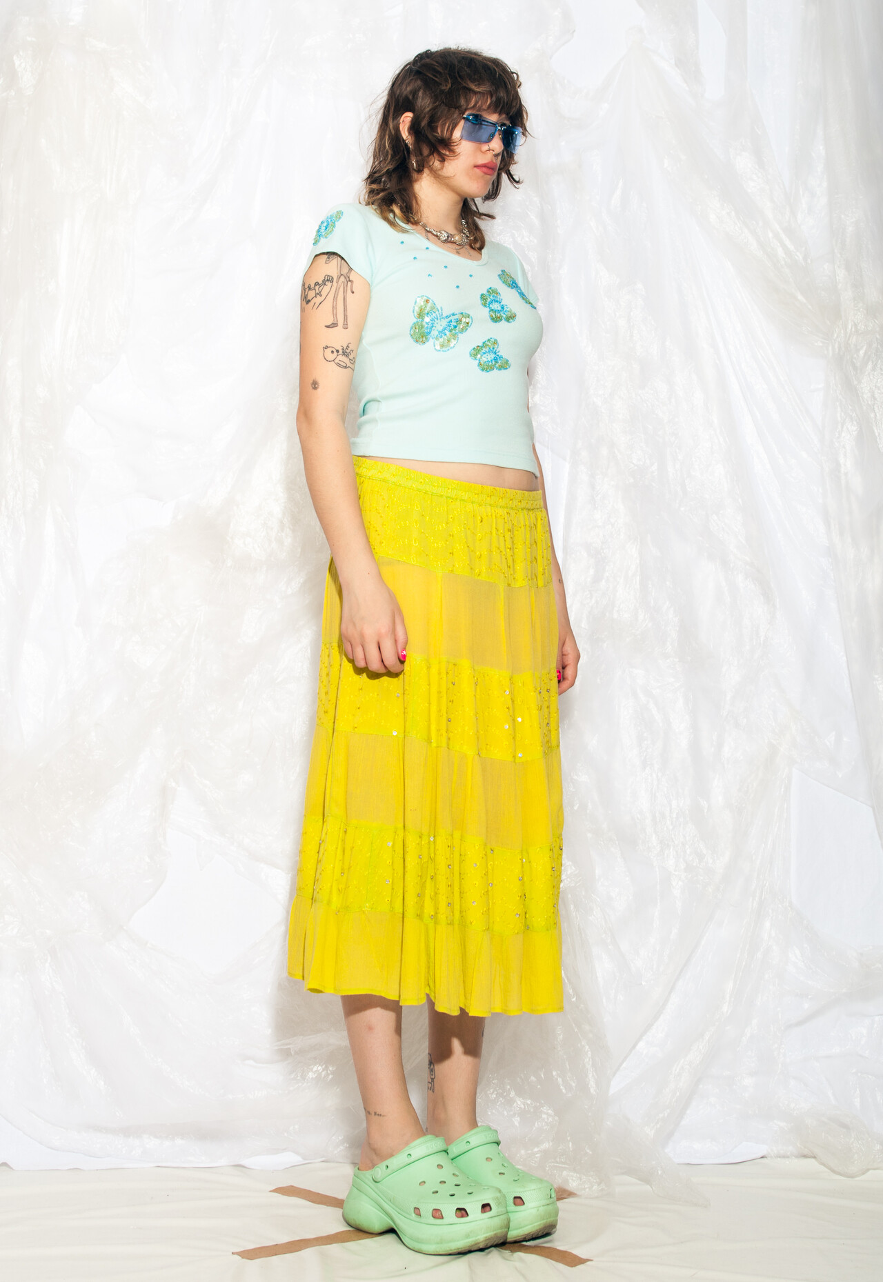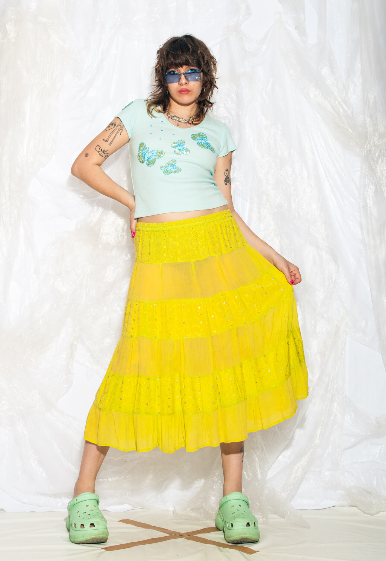 Vintage Y2K Tiered Skirt Fairycore Maxi in Yellow