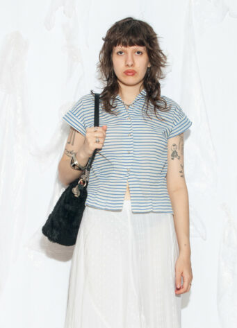Vintage Y2K Ruched Waist Blouse in White Lace