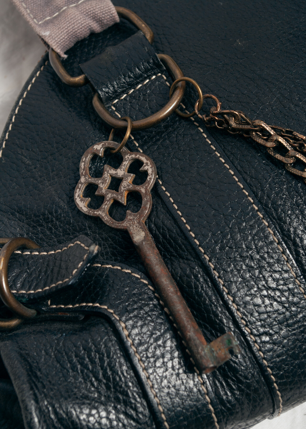 Reworked Vintage Y2K Leather Bag with Chain And Key Charm
