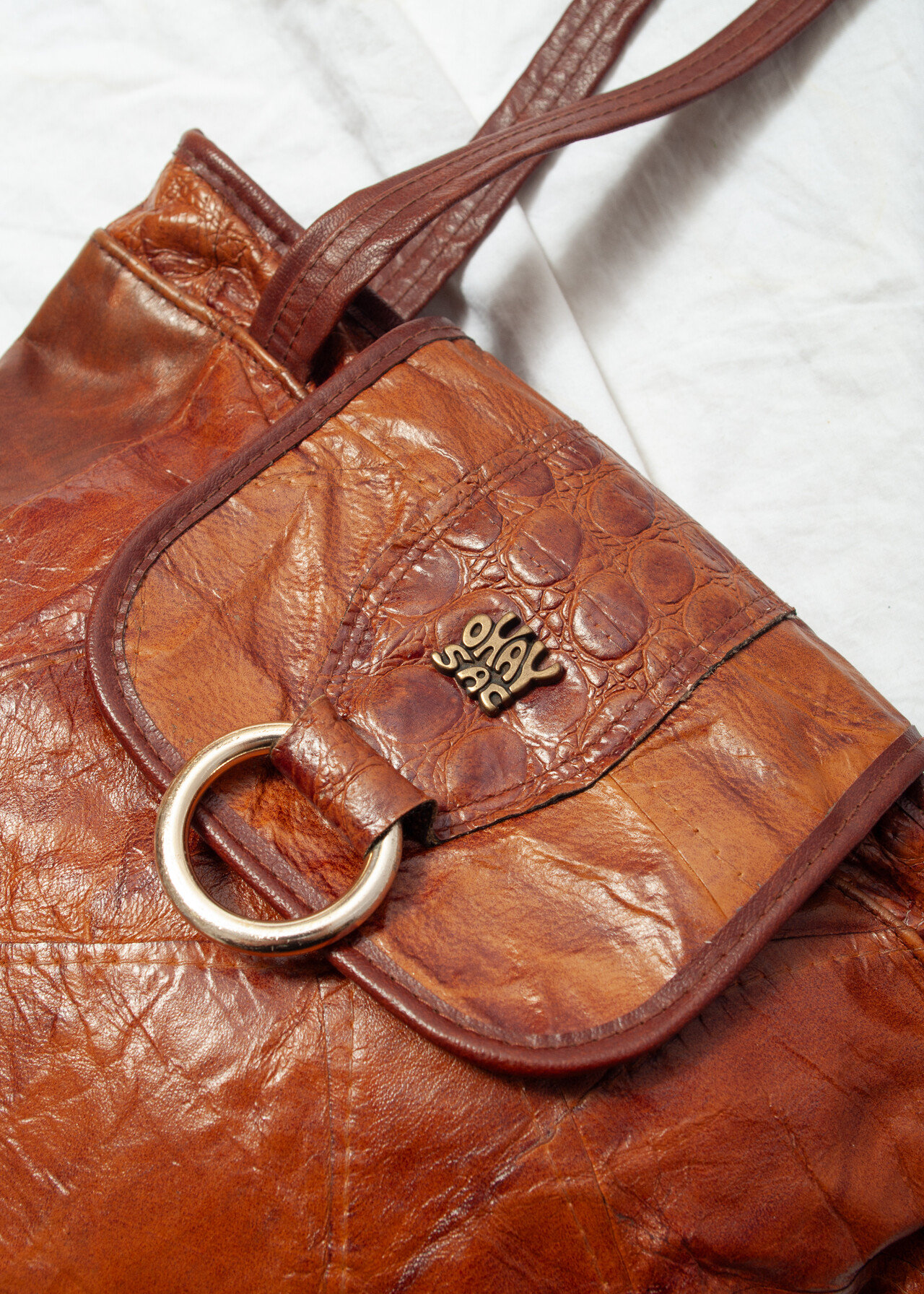 Vintage Y2K Okay Sac Leather Patchwork Bag in Brown