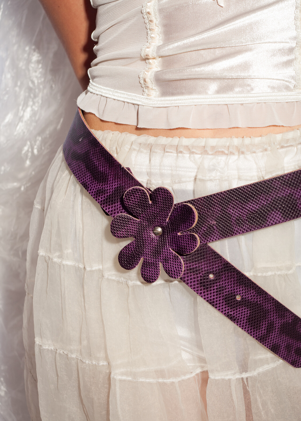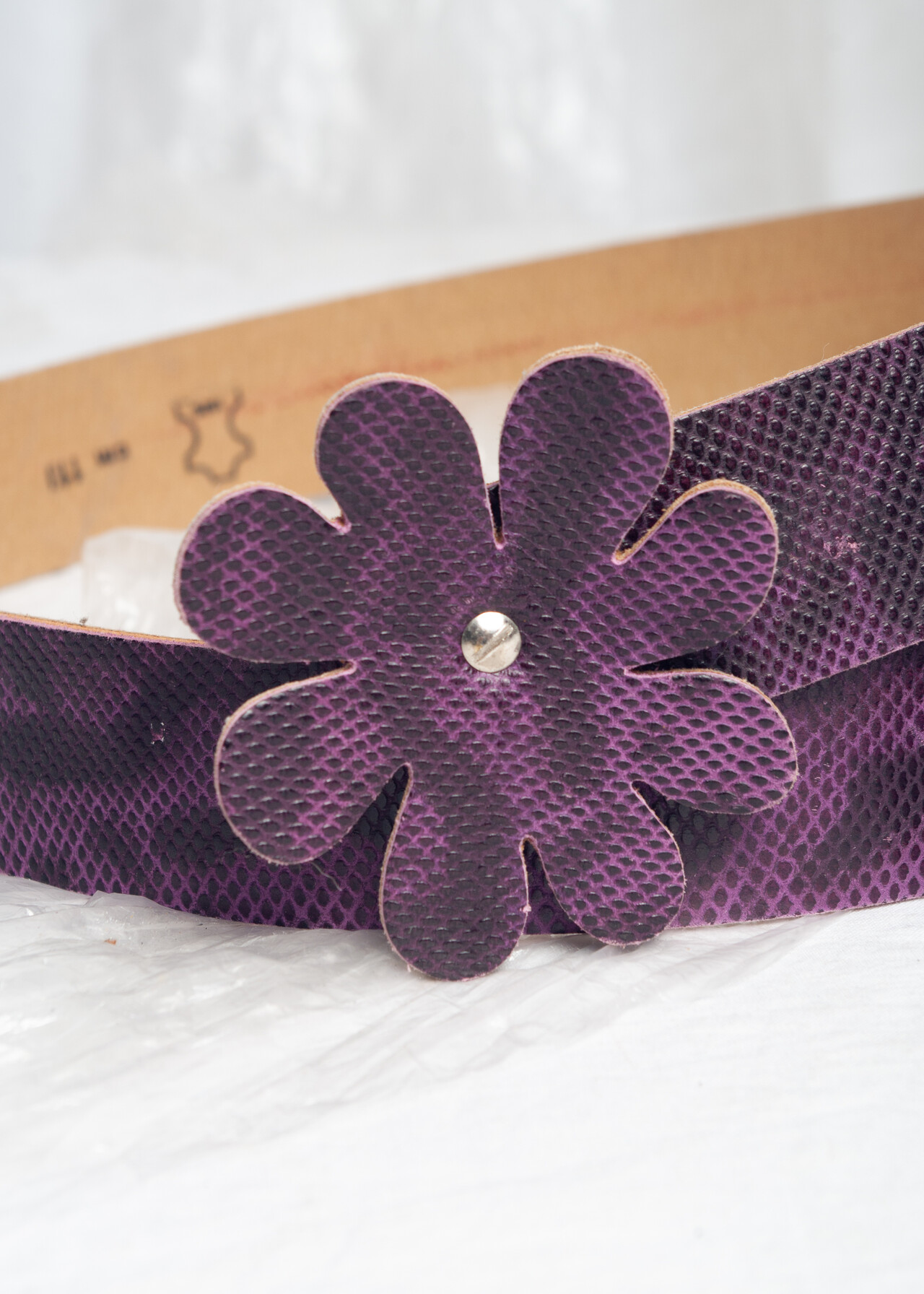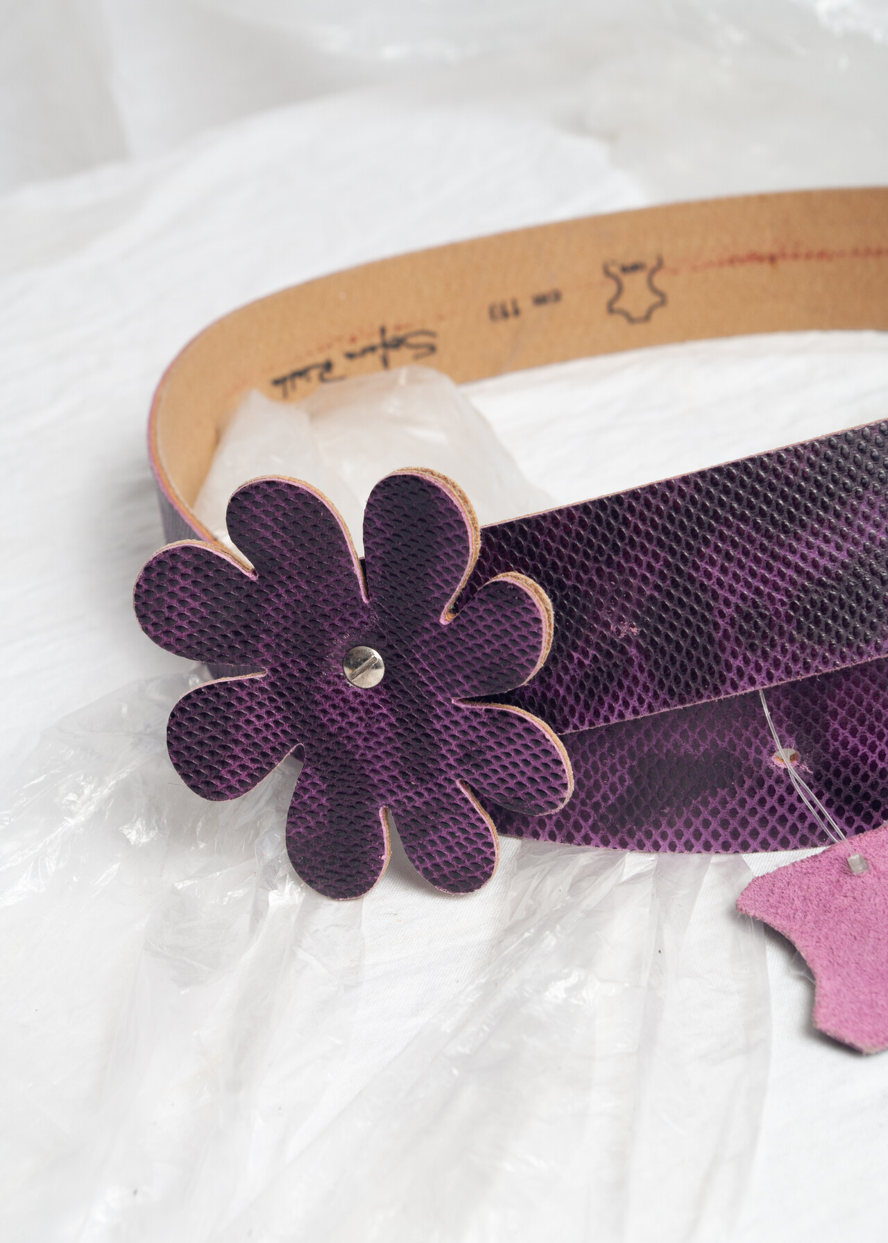 Vintage Deadstock Y2K Flower Belt in Purple Leather