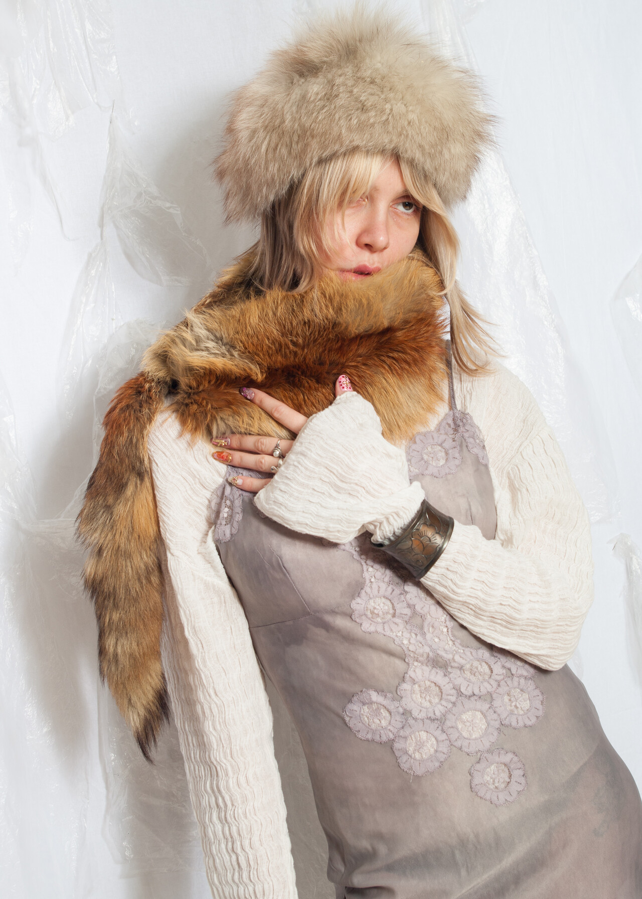 Tags: 60s vintage fashion, boho aesthetic, fox fur, fur shawl, Penny Lane, real fur, y2k style accessory