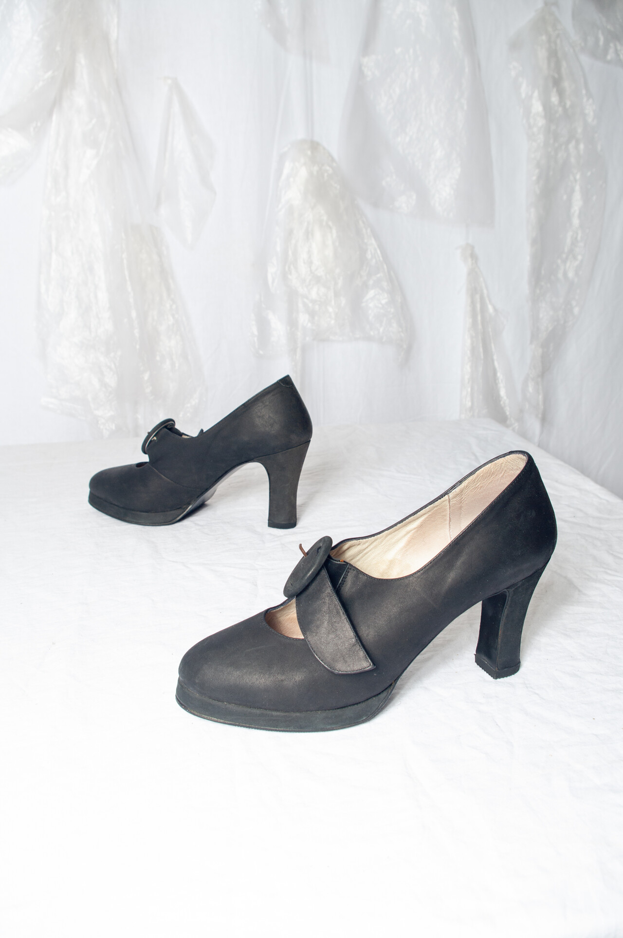 These 90s vintage shoes by Kaláka Design Studio are your ticket to strut down memory lane in genuine suede and high heel style. With black real leather and a dash of 70s flair, these designer shoes are ready to party like it’s 1992!