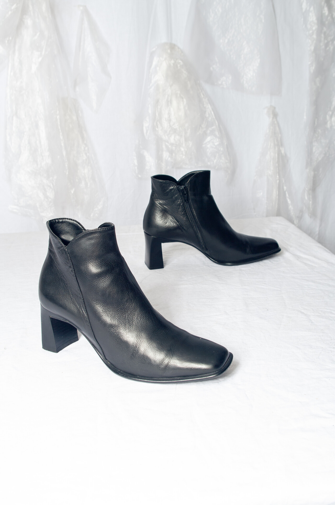 Tags: black ankle boots, block heels, European vintage, leather boots, made in Italy, minimalist style, office siren, officecore aesthetic, whimsigoth, y2k style accessory, y2k vintage fashion
