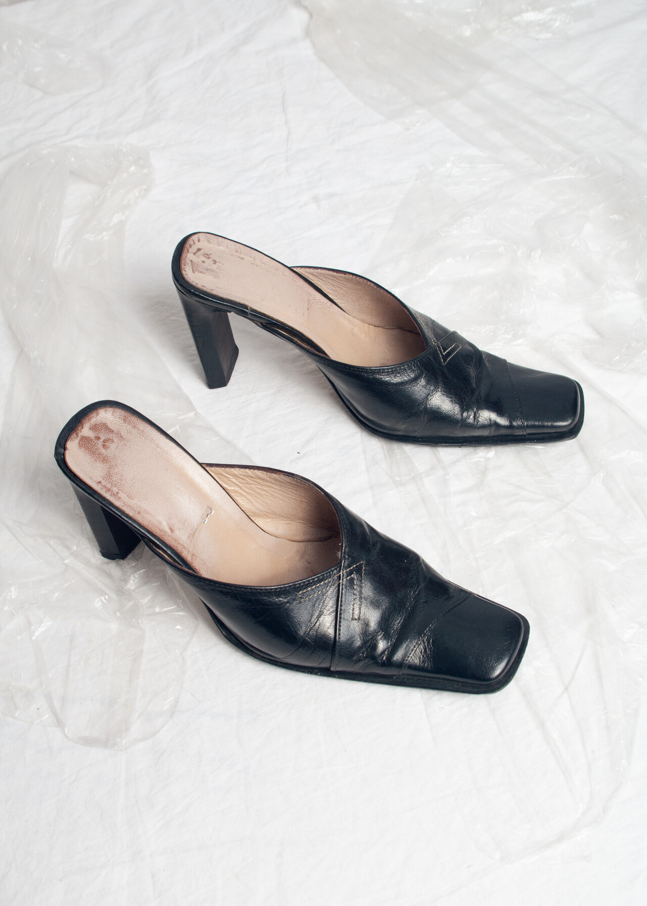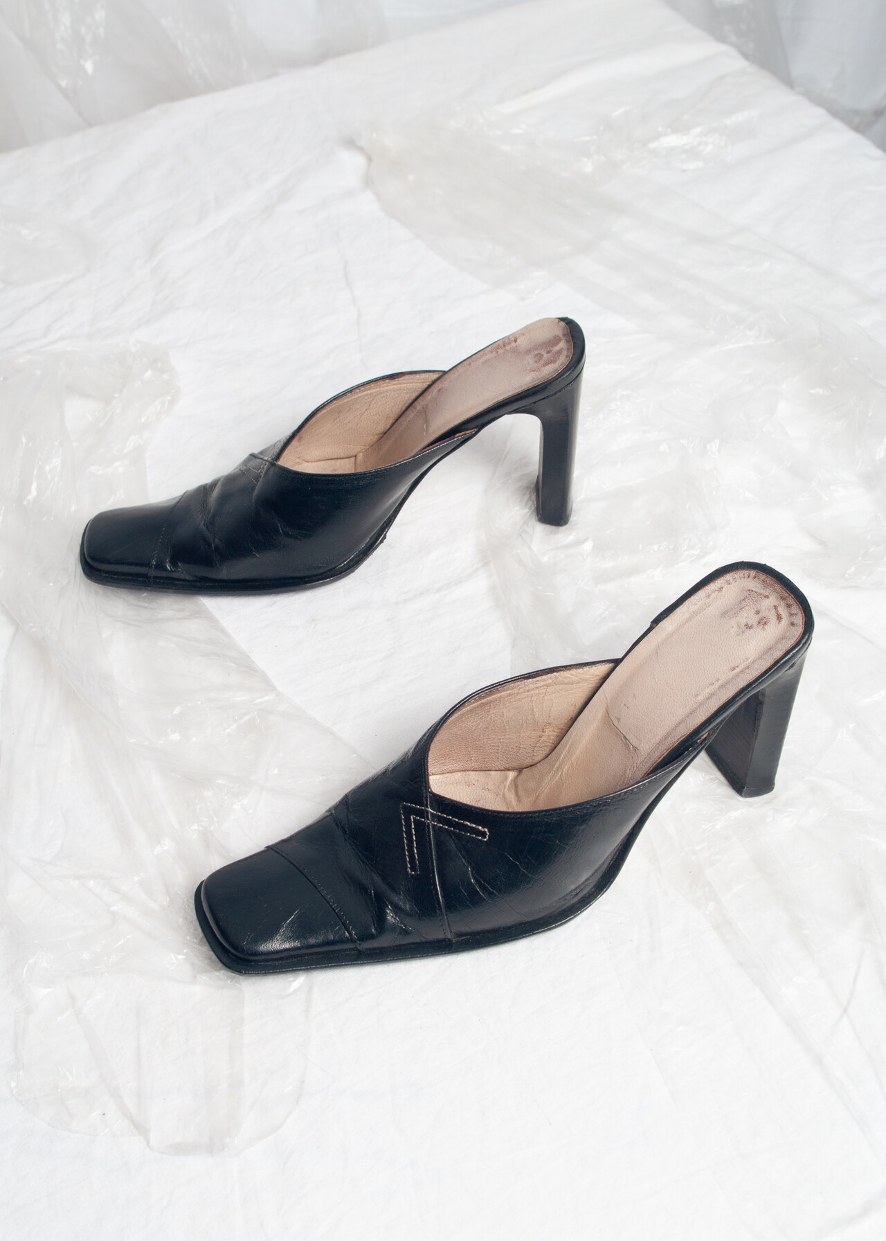 Vintage Y2K Leather High Heel Mules in Black