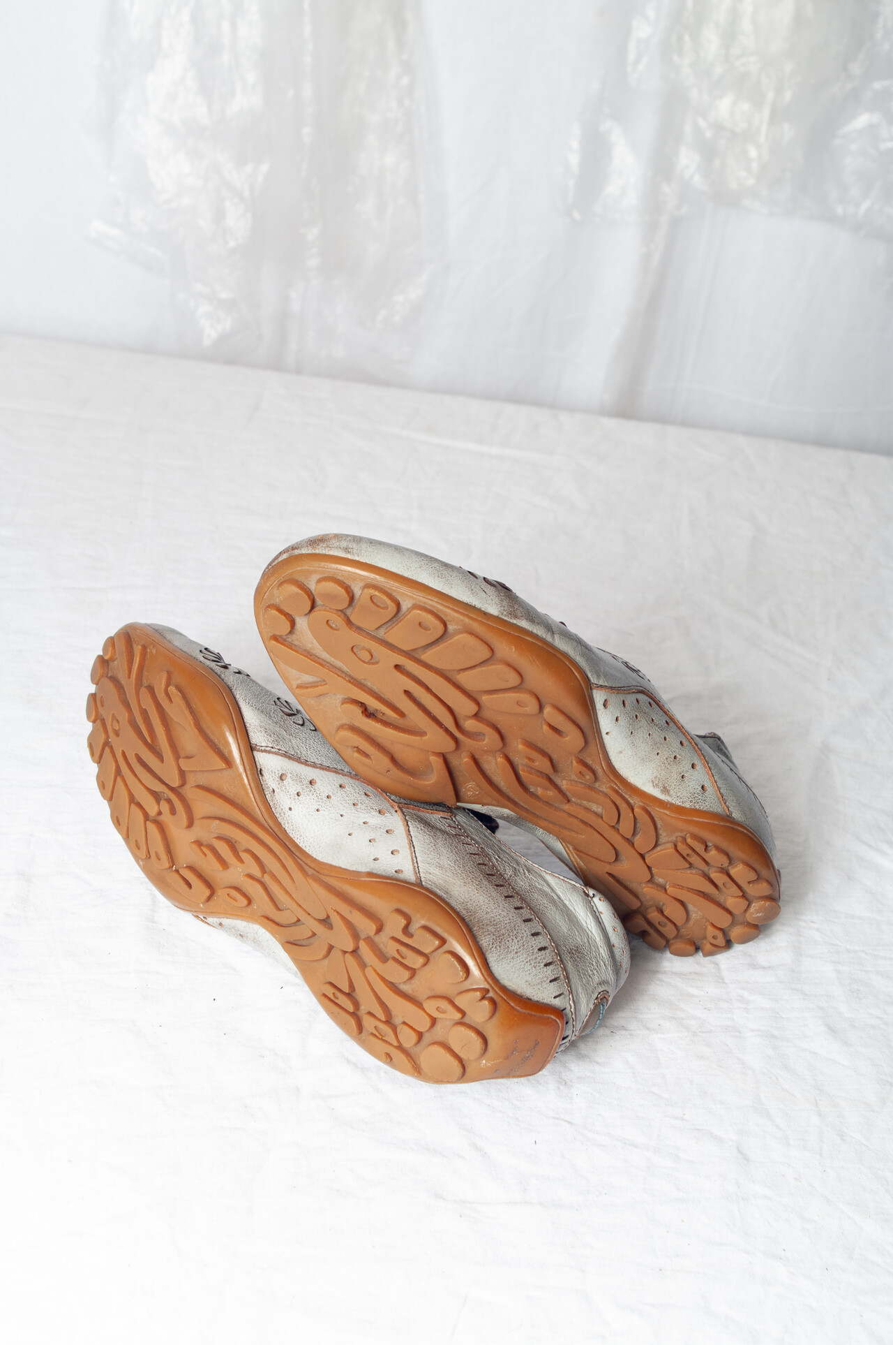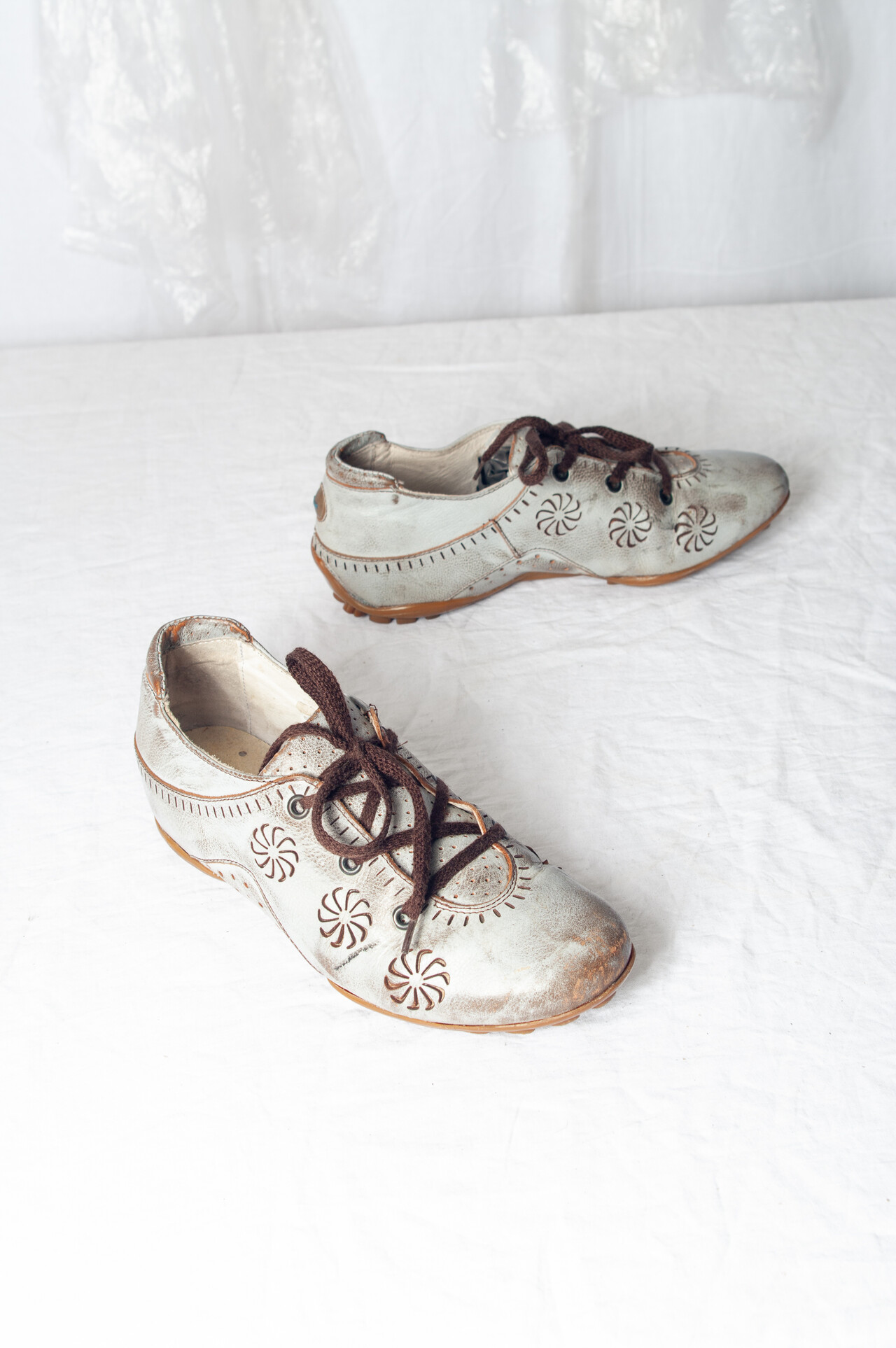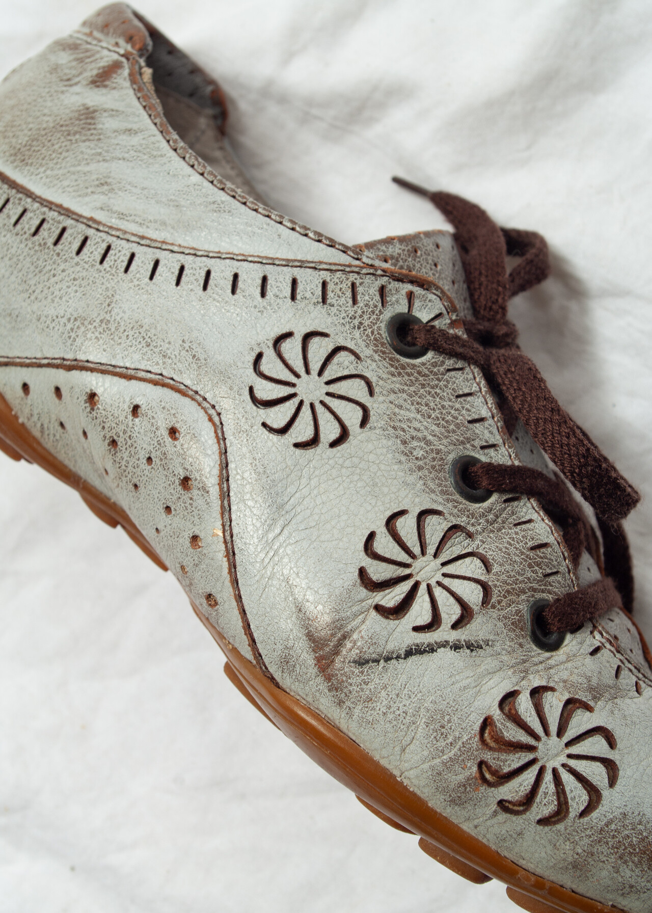 Tags: 00s streetwear, 2000s vintage, designer vintage, distressed look, grunge sneakers, leather shoes, patterned sole, sporty coquette, whimsi twee, y2k style accessory