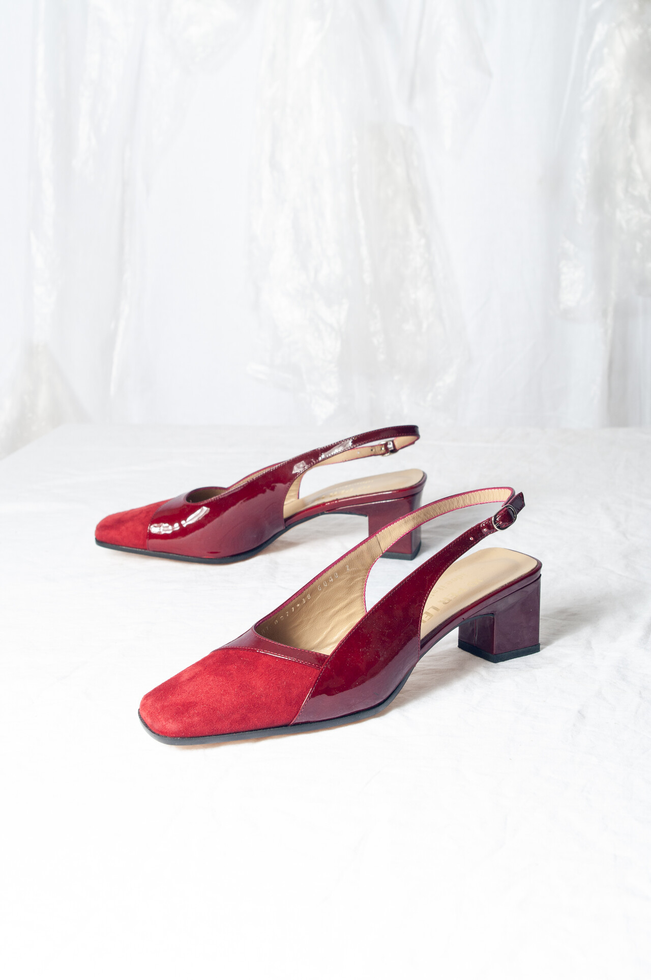 Tags: 2000s vintage, block heels, elegant footwear, European vintage, leather shoes, made in Italy, maroon sandals, occasionwear, y2k style accessory