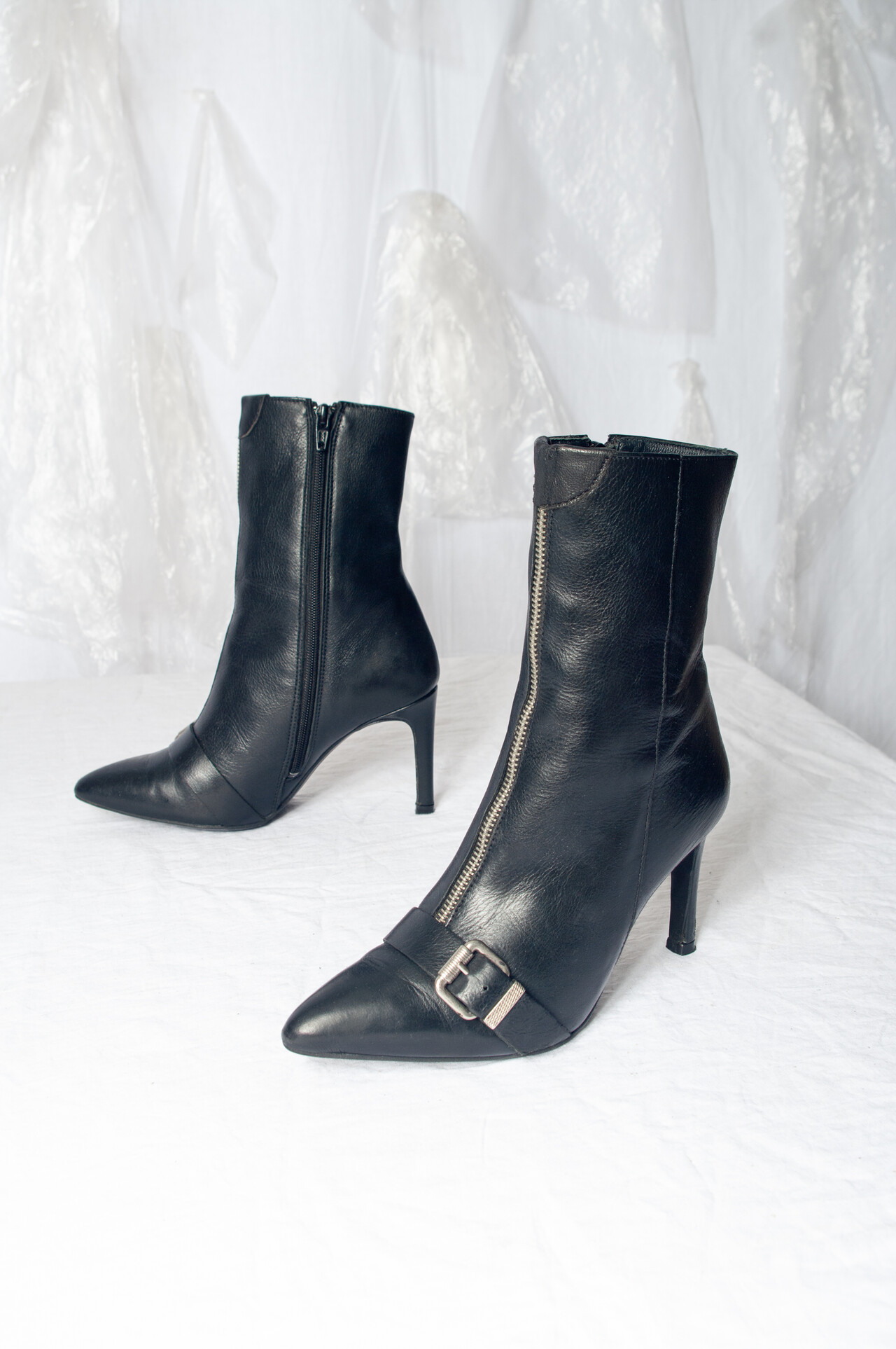 Be the first to review “Vintage Y2K Pointed Buckle Boots in Black Leather”