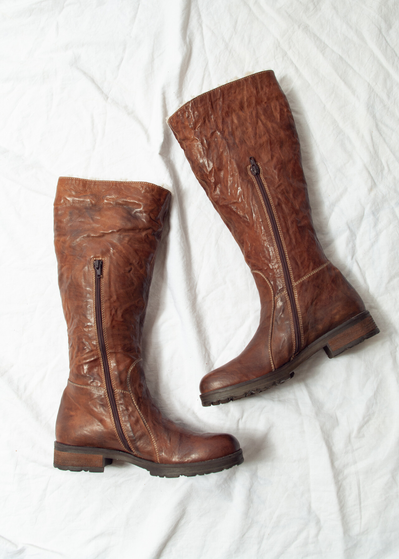 Vintage Y2K Shearling Knee Boots in Brown Leather
