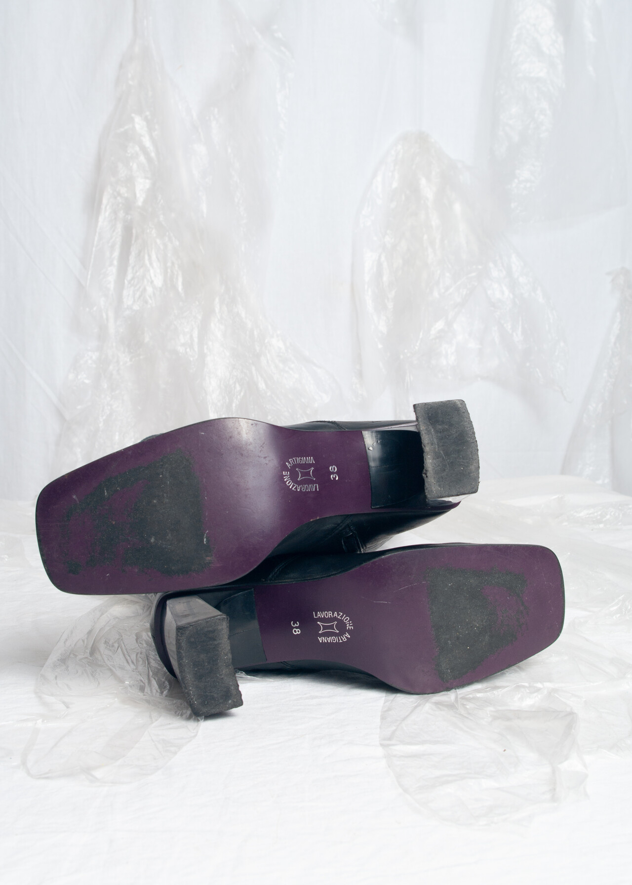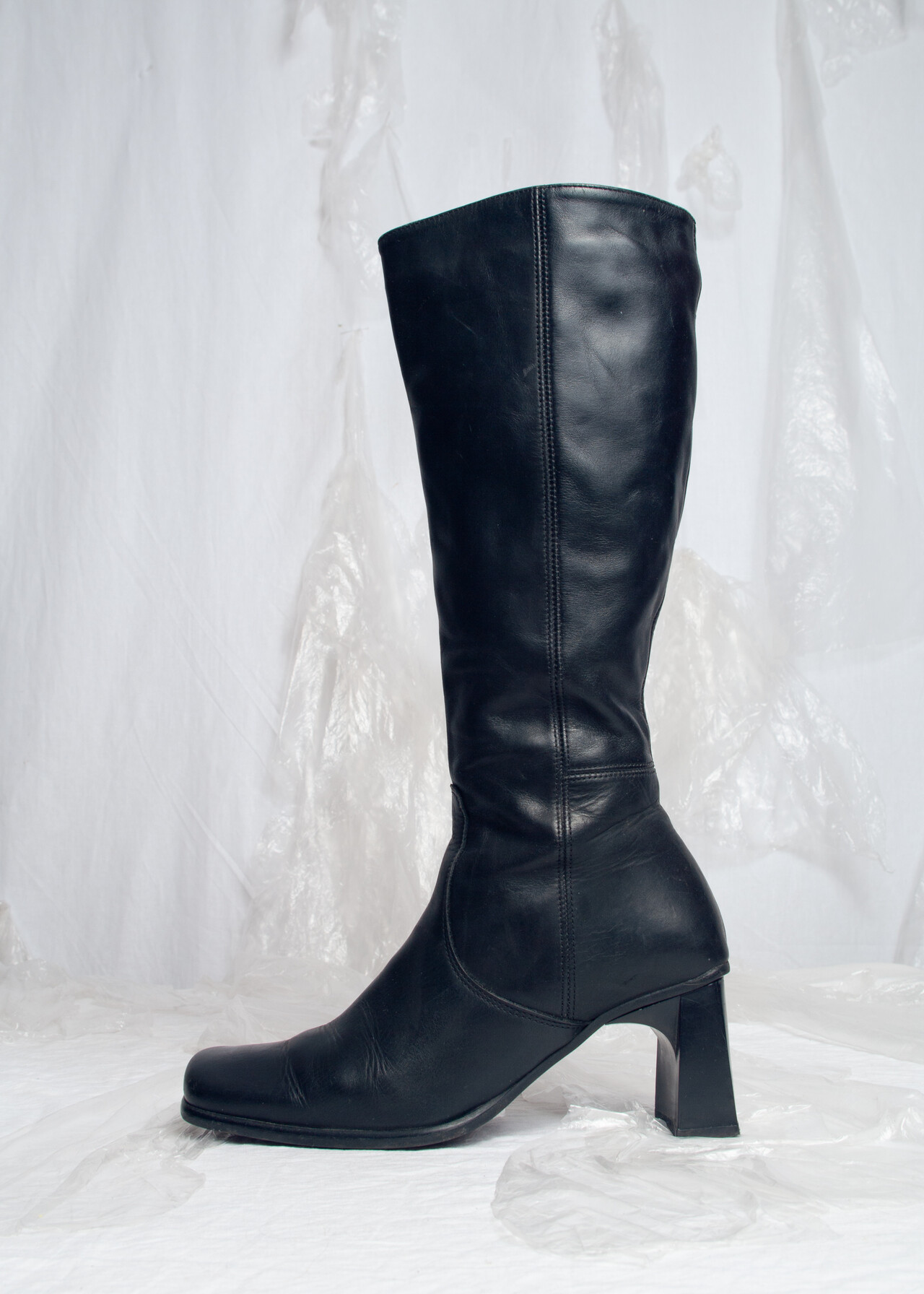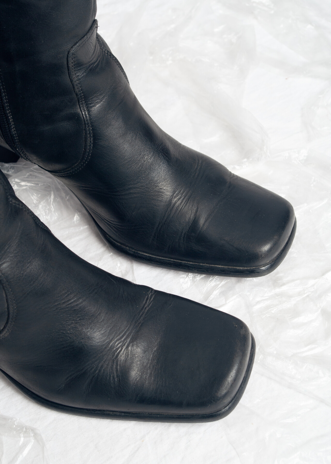 Tags: 2000s vintage, knee high boots, minimaist, office siren, real leather boots, square toe, whimsical aesthetic, y2k style accessory