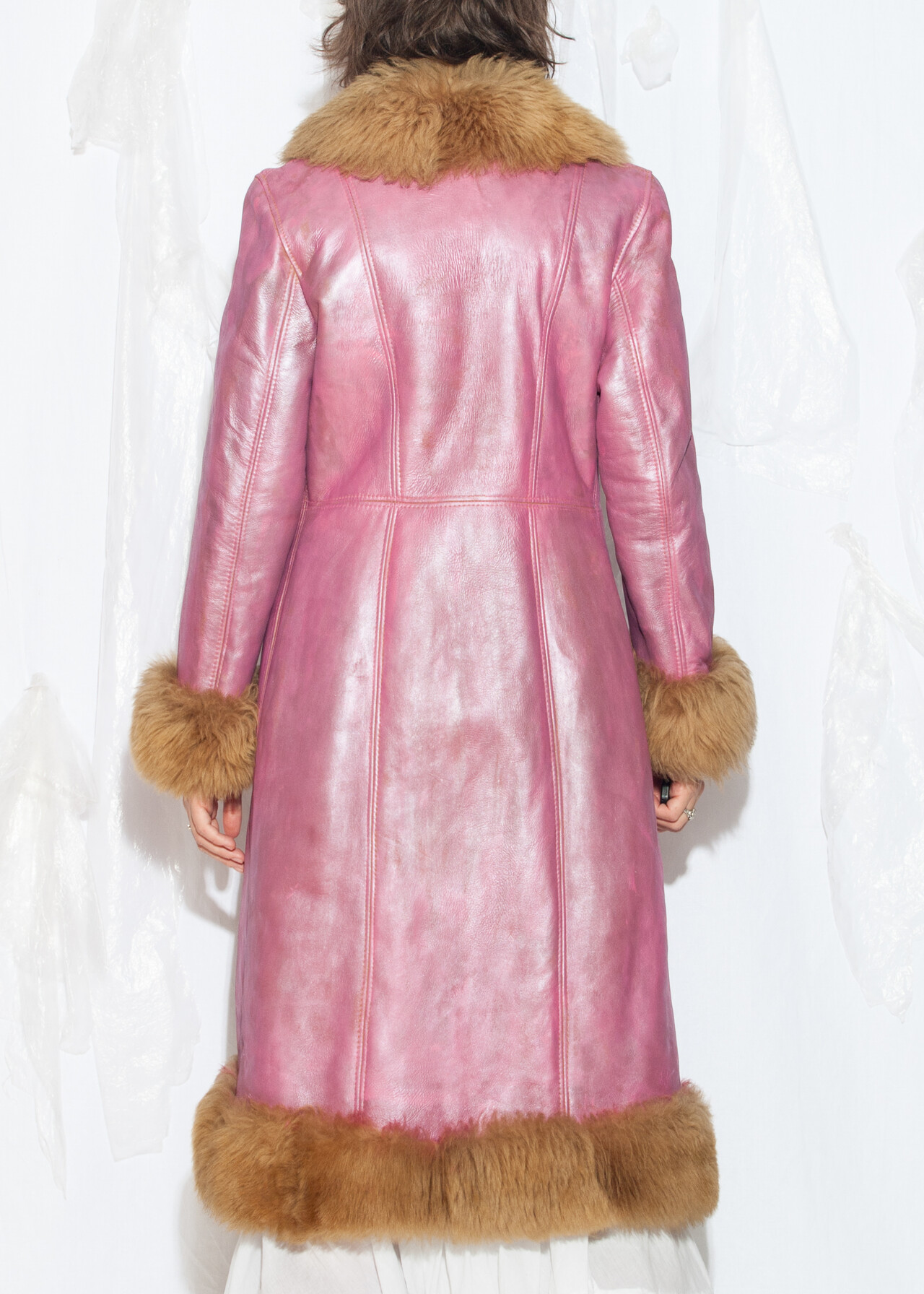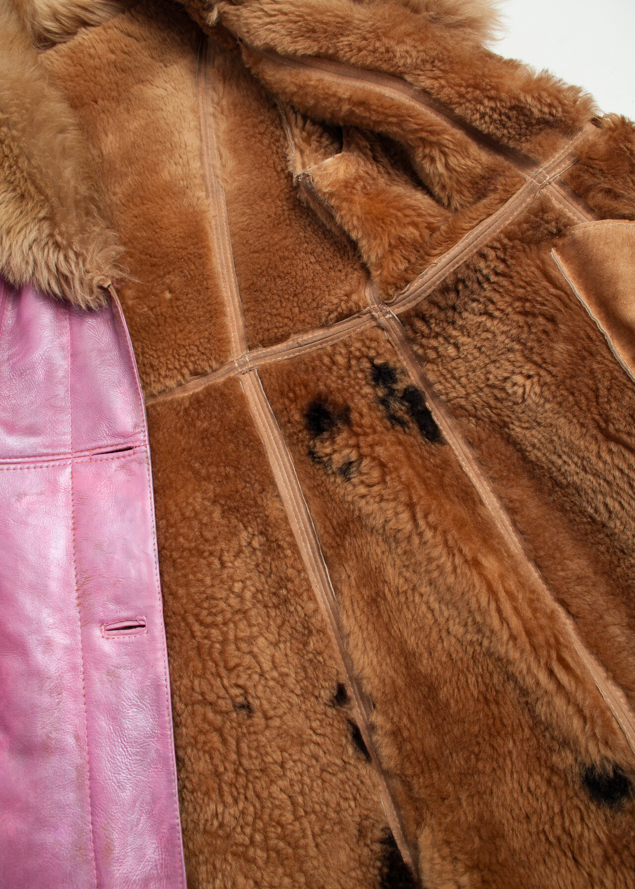 Reworked Vintage 70s Shearling Leather Coat in Pink