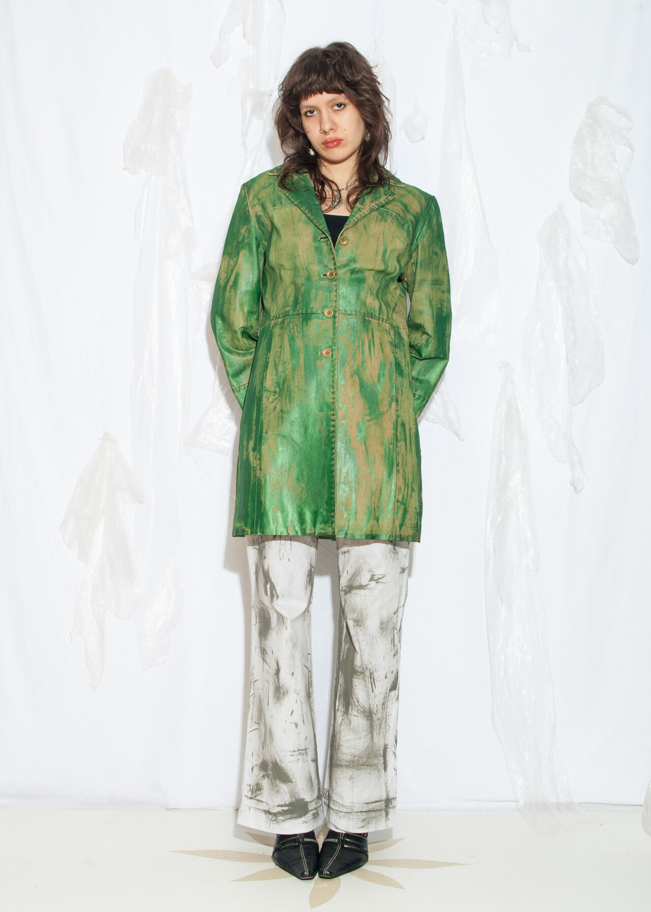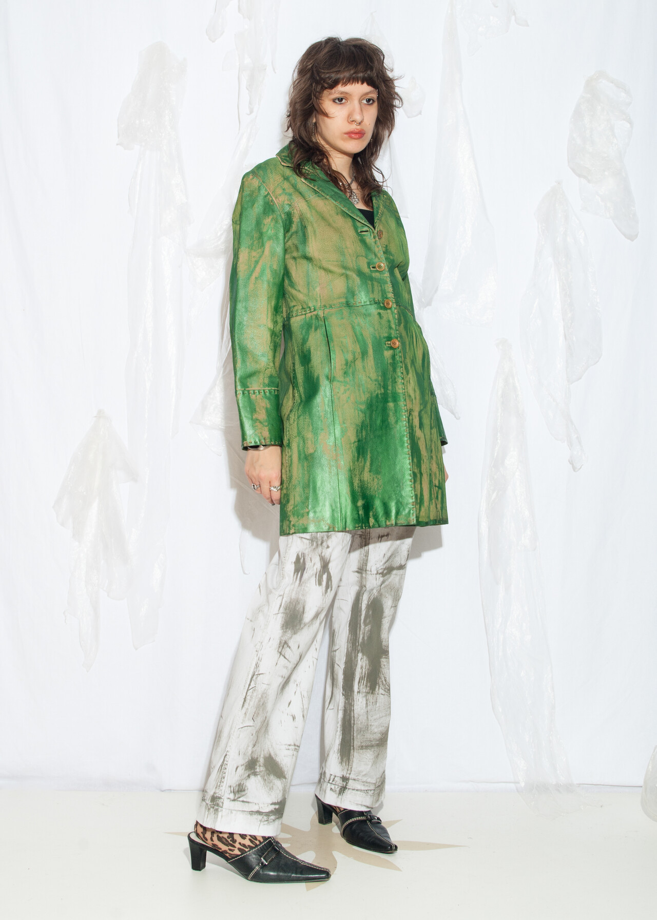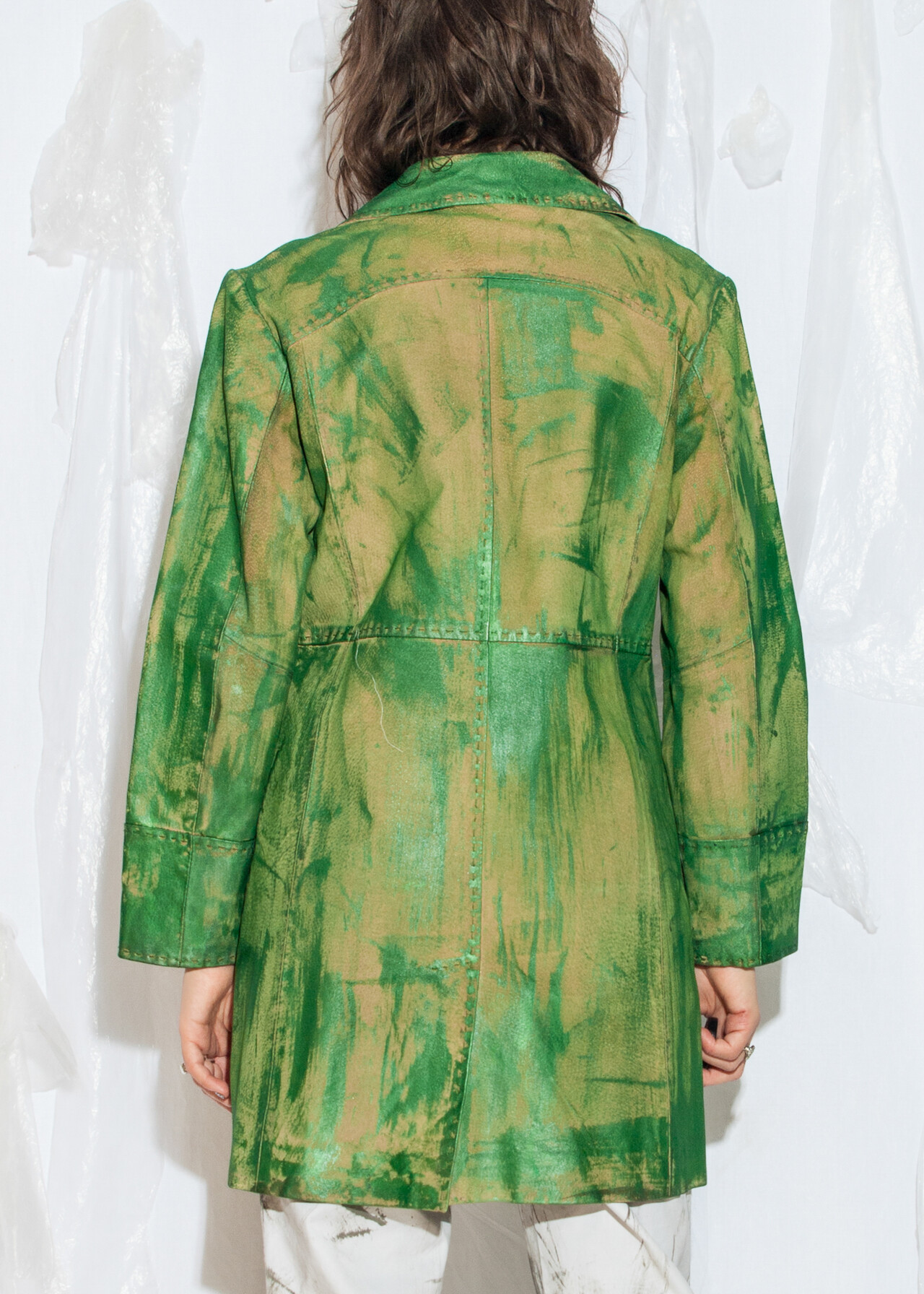 Be the first to review “Reworked Vintage Y2K Leather Coat in Hand-Painted Green” Cancel reply